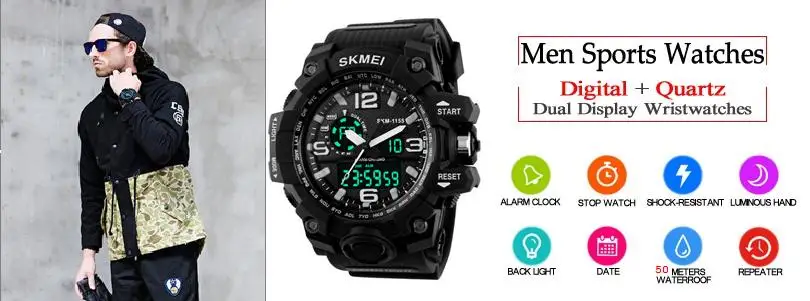 с Шока Мужские Военные Часы Для Мужчин Спортивные Часы SKMEI Люксовый Бренд Аналоговые Кварцевые И СВЕТОДИОДНЫЙ Цифровой Открытый Водонепроницаемый часы