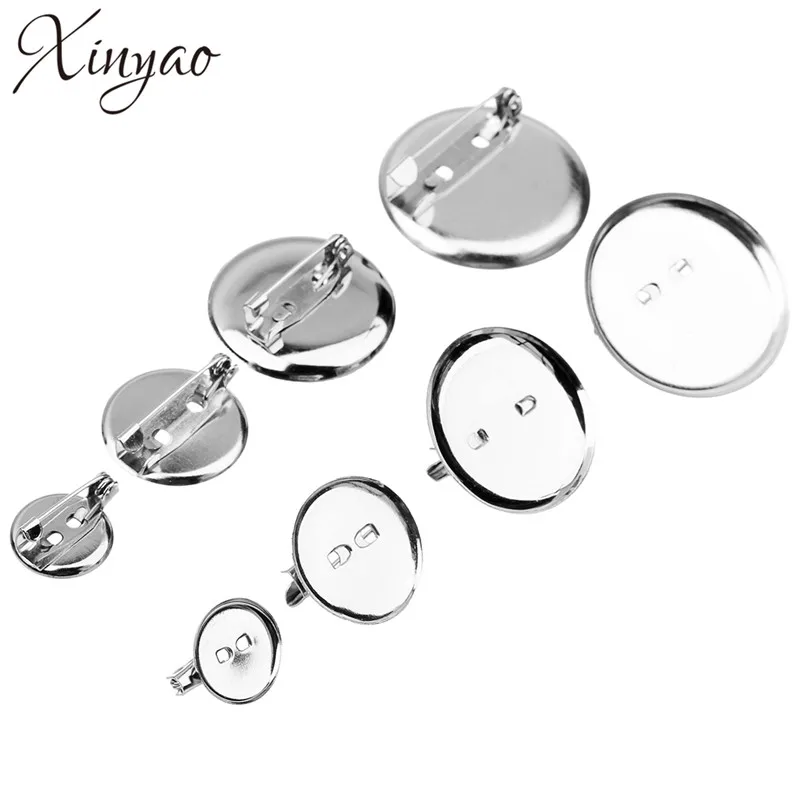 50 шт. родий Цвет 15 20 25 30 мм круглая брошь База кабошон заготовки лотки с брошью Шпильки Камея Кабошон база установка F1849