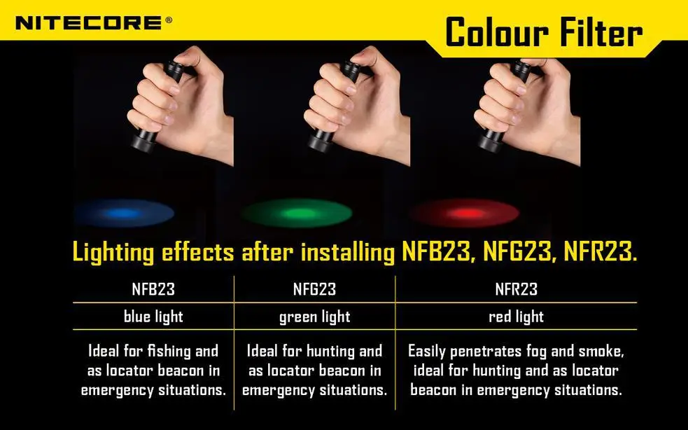 Цветной фильтр Nitecore (22,5 мм) NFR23 NFB23 NFG23 NFD23, подходит для фонарика с головкой 22,5 мм, 1 шт.