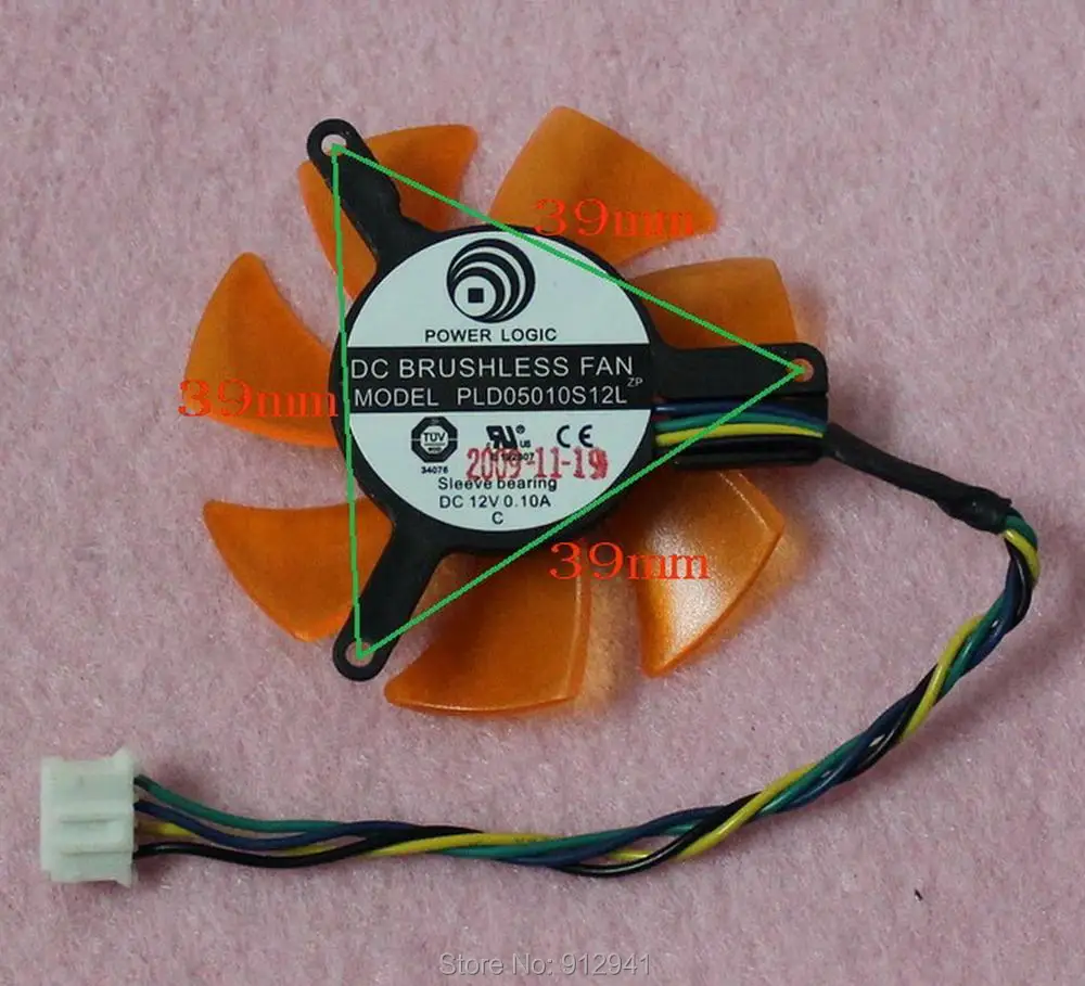 Кулер для видеокарты R175 POWER LOGIC PLD05010S12L, 45 мм, замена вентилятора 39 мм, 12 В, 0,10 А, 4 провода, 4-контактный разъем
