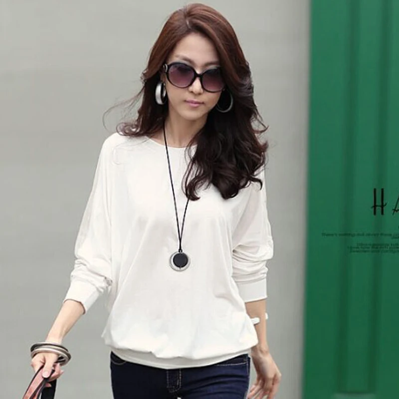 Женская футболка с рукавом летучая мышь, белая свободная футболка с длинным рукавом, большие размеры, 2022