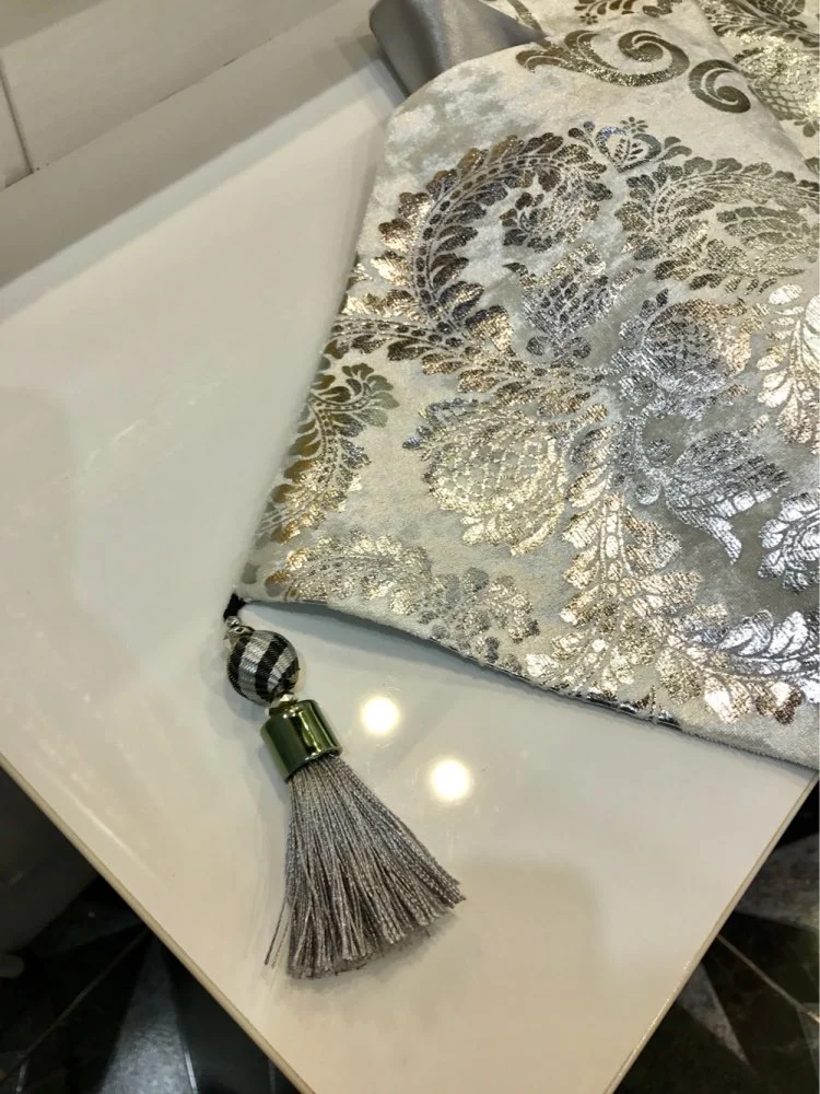 Бесплатная доставка, ручная работа, настольный бегун в европейском стиле, Серебряное украшение для дома, скатерть, вышитая ткань, отель, вилла, свадьба
