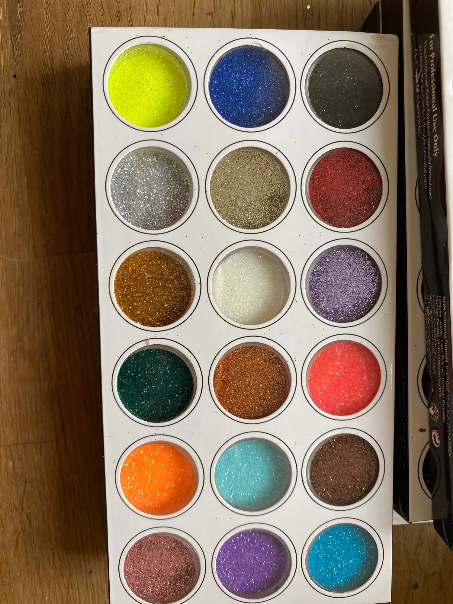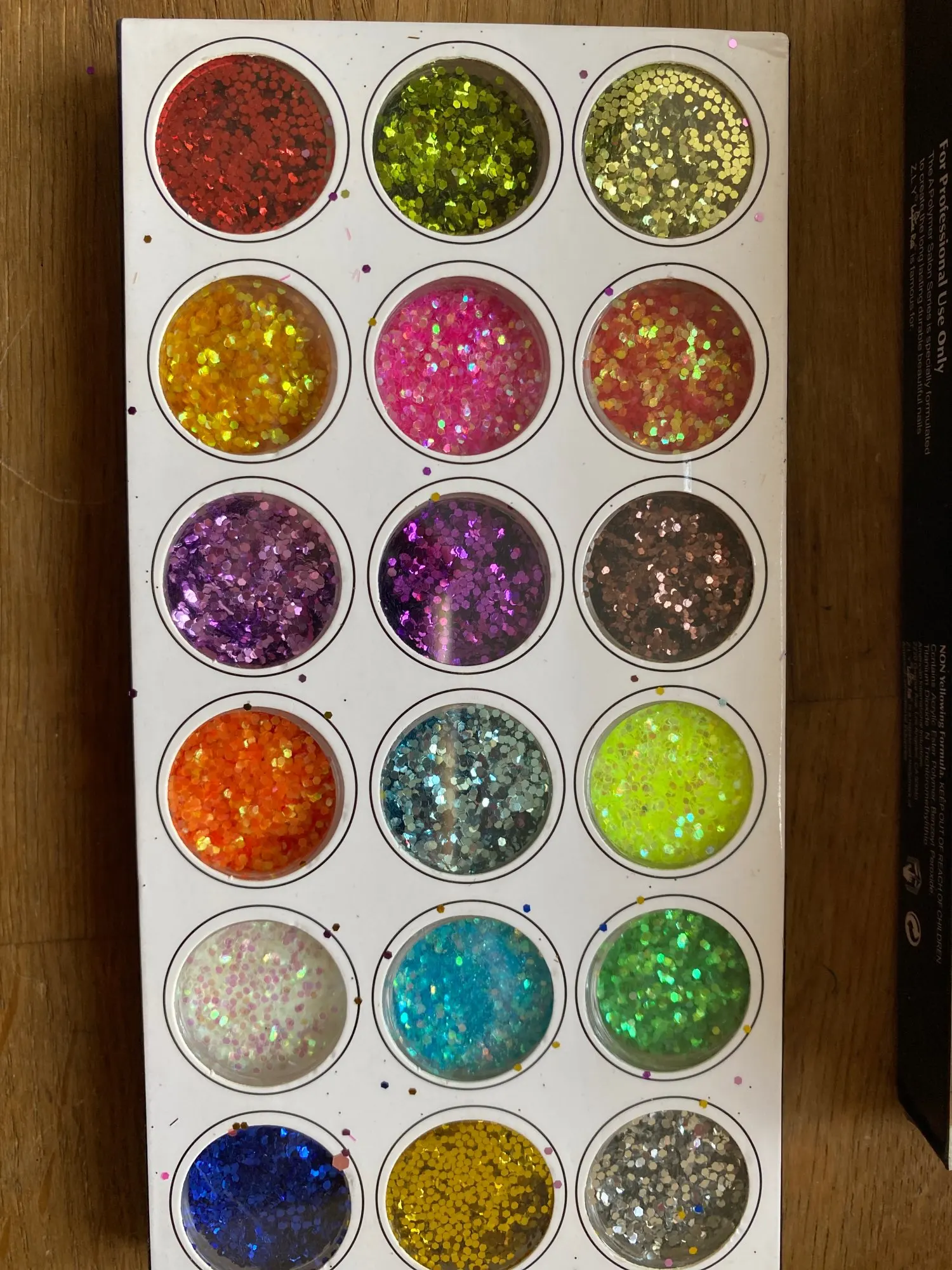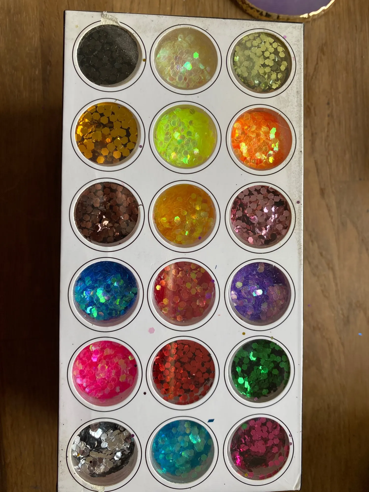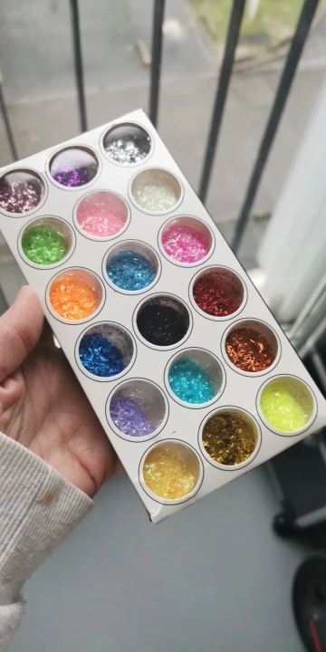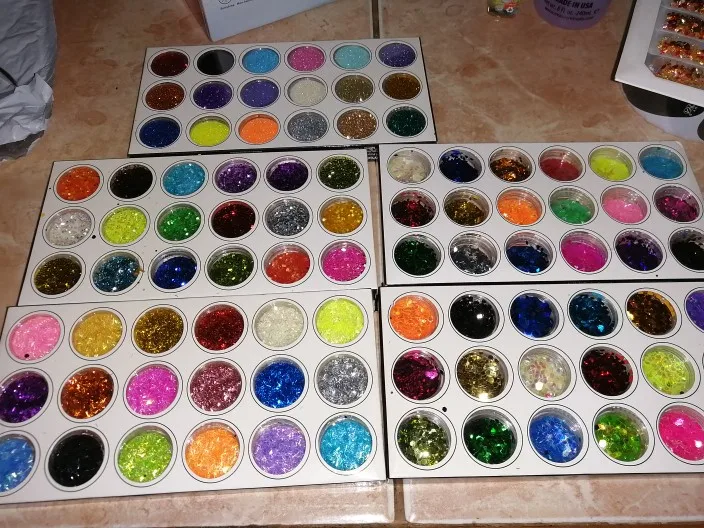 Быстрая доставка. Прибыла в пышную почтовую службу, а внутренняя часть покрыта блестками. Несколько крышек были почти выключены, в результате чего блестящая бомба. Это было не так много и цвет, который мне не очень нравится. Я затянул каждую крышку, сдул дополнительный блеск и поместил их в коробку. Я купил это для вещей, которые выглядят как палочки, но ромбовидная форма очень хороша. Очень рад. Не было необходимости в общении. Настоятельно рекомендуется.