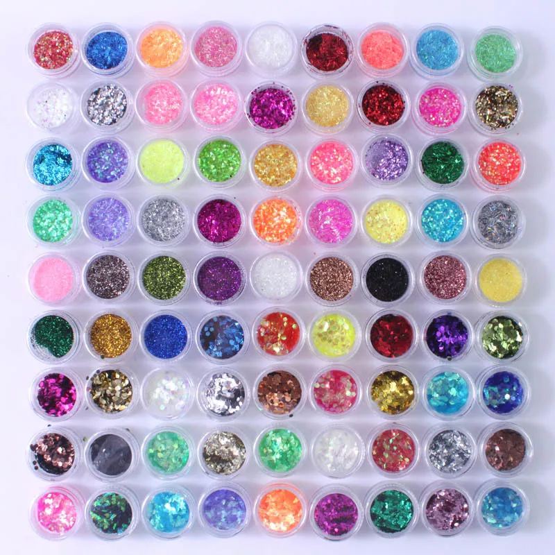 Блестящая пудра для ногтей, разноцветная, 90 Горшков