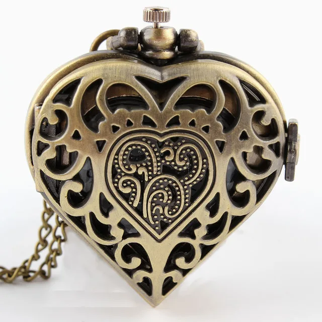 Ретро бронзовые полые, в форме сердца черные Серебряные винтажные карманные часы ожерелье кулон металлический кварцевый механизм Женские Мужские часы Подарки