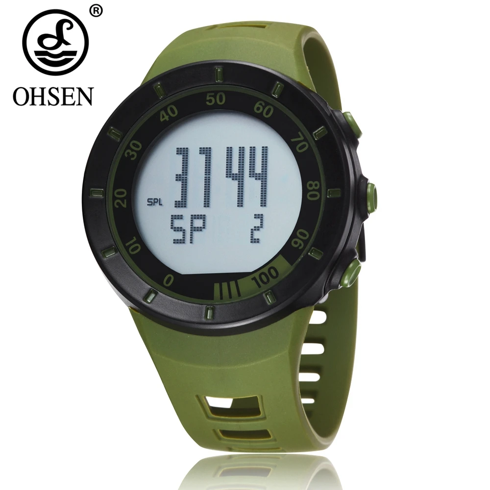 OHSEN Электронные Цифровые мужские наручные часы Секундомер зеленый военный светодиодный наручные часы модные спортивные дайвинг унисекс часы relogio masculino