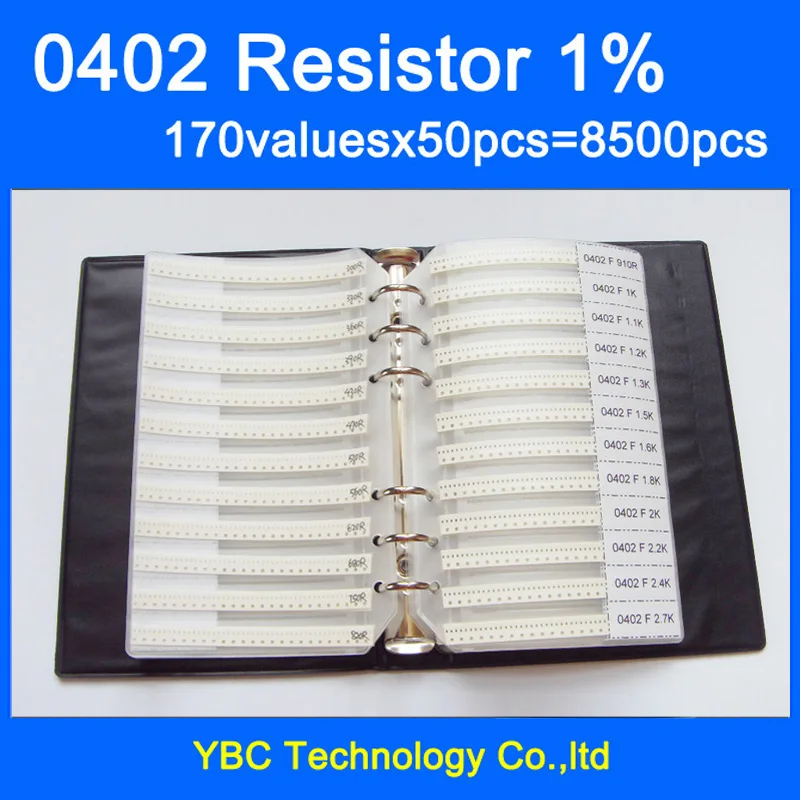 Образец резистора 0402 SMD, книга с 1% толерантность 170 valuesx50 шт. = 8500 шт. комплект резисторов 0R 10 м
