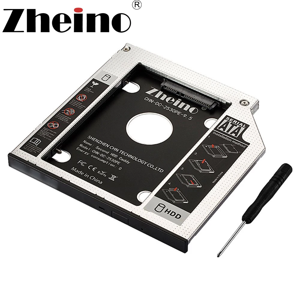 Алюминиевый переходник Zheino 9,5 мм для установки второго жесткого диска SSD Caddy 2,5 SATA для SATA, корпус Caddy HDD, адаптер для ноутбука, CD/DVD-ROM ODD