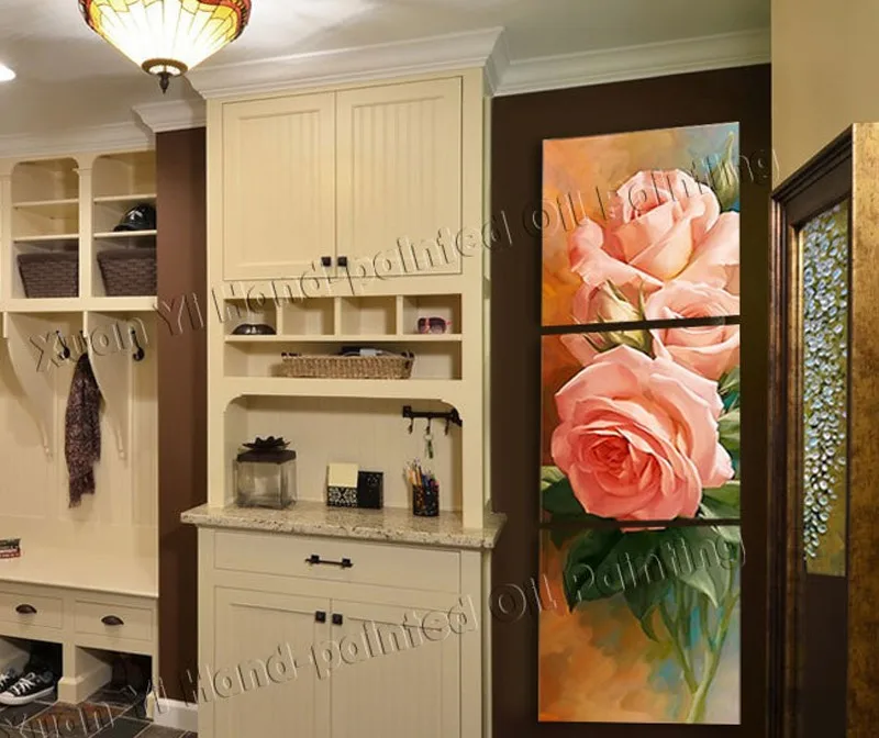 Придет к вам три части картины.очень качественный и плотный холст. на них из тоненьких реек сделайте три штуки или закажите,и вешаете либо с небольним расстоянием ,либо вместе.пришло намотанная на валик,так что заломов нет.