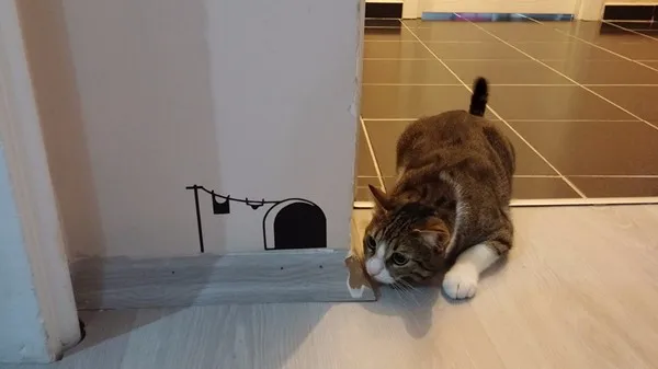 Наклейки на стену с милым котом модные стильные наклейки на стену Интересный мультфильм 39х28см, наклейки на стену с котом домашний декор, A3000 US $4,72Долларов США/шт