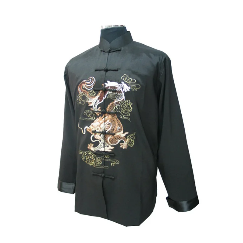 Черный китайский Мужской Шелковый костюм Тан Новинка кунг-фу куртка классическая Вышивка костюм кунг-фу Рубашка Размер M L XL XXL XXXL MJ080