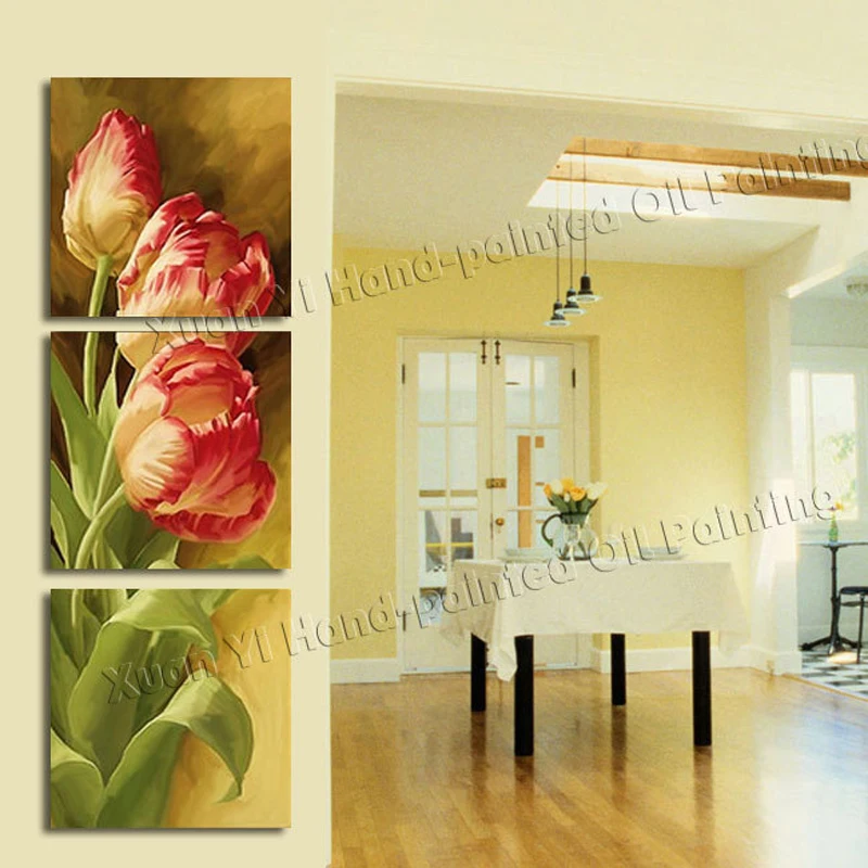 3 панели современный принт Тюльпан Цветок картина Картина квадратные цветы холст настенное искусство домашний декор для гостиной без рамки PR211