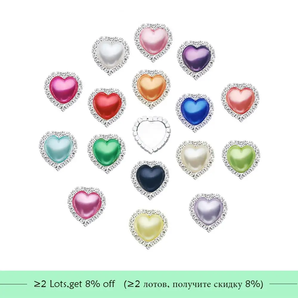 Пуговицы жемчуг в форме сердца Стразы с плоской задней частью (BTN-5031), 20 мм, 10 шт.