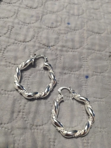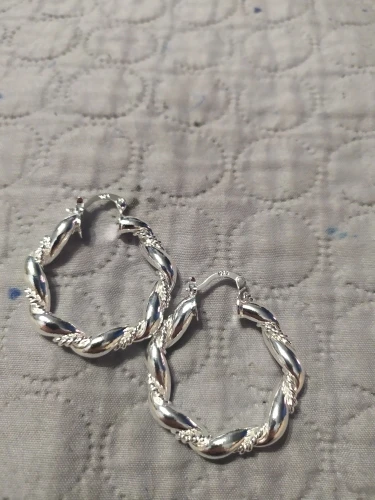 Массивные круглые серьги, которые очень стоят покупки. Продуманный дизайн, который выглядит точно так же, как на фотографии и описании продавца. Серебряный цвет выглядит точно ярко и металл на ощупь крепкий. (Я также замечал, что стебли штампованы) все то же самое, они Забавный, модный стиль по очень доступной цене. Благодаря продавцу, я, скорее всего, снова закажу здесь.
