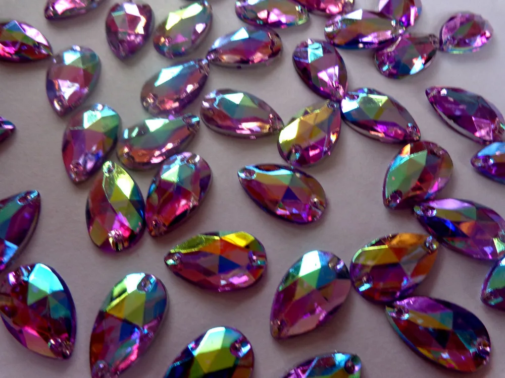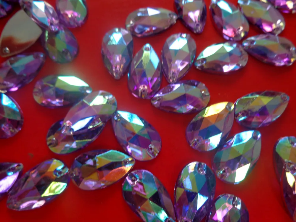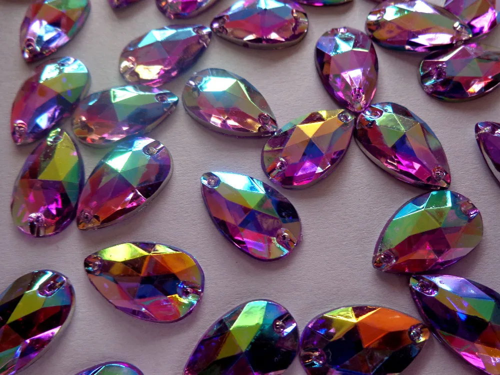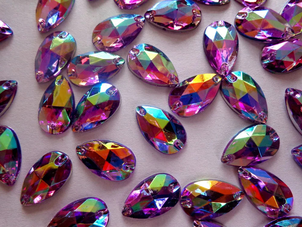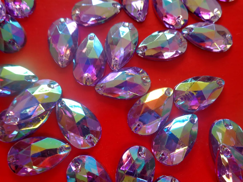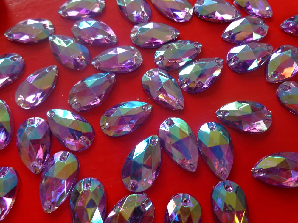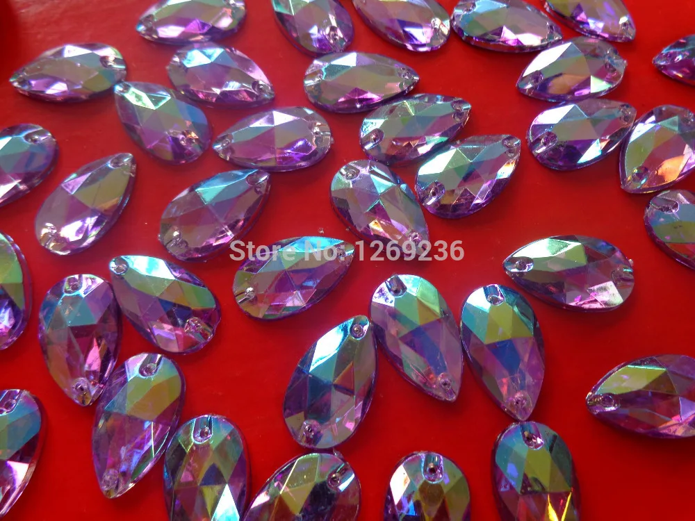 Пришивные Кристаллы из акрила в форме капли светильник-Фиолетовые AB Цвет аксессуары из стразов для ручного шитья камни 150 шт. 11*18 мм
