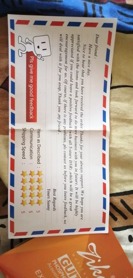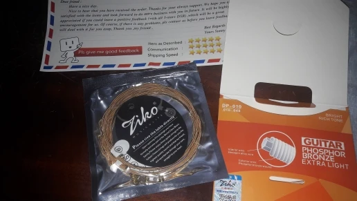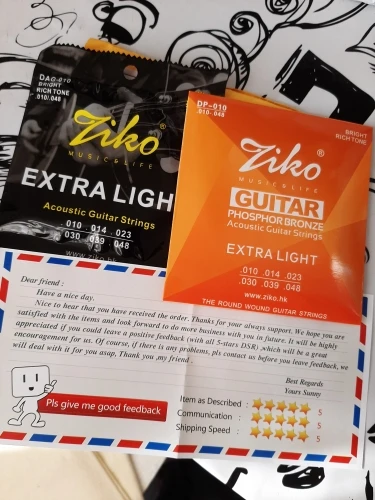 спасибо продавцу за товар, товар пришел где-то за месяц это относительно норм так что спасибо и доставке, а так струны норм от зико, попробовал никель бронзу , 10 размер не берите ,берите сразу 12 размер струн, чтобв вы могли сразу наслаждаться звуком от струн, и вообще я пишу всё, что душе угодно.