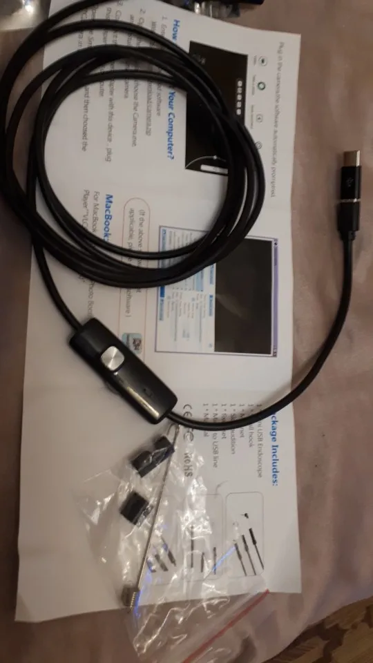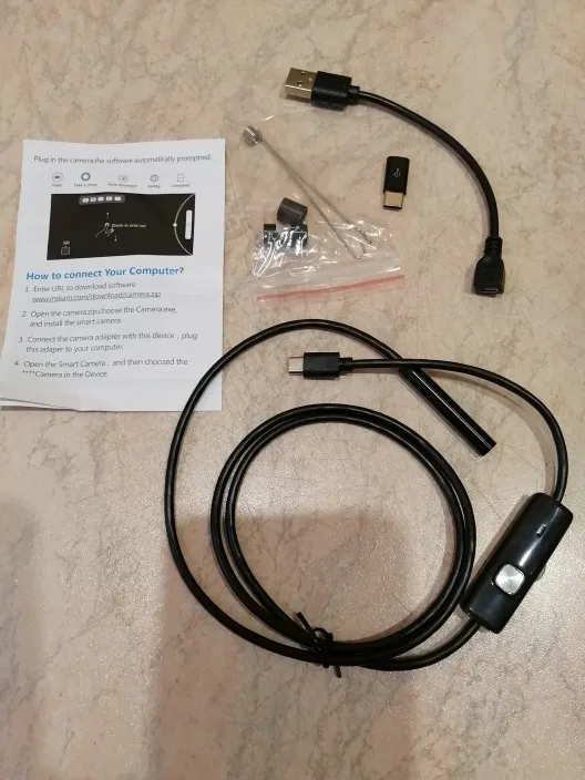 Как всегда Китай удивляет!!! USB Камера просто супер! Приложение можно установить из Плей Маркета - Эндоскоп (язык английский по умолчанию) или из Инструкции по QR code (стоит язык китайский, но в настройках Русского языка нет, ряд европейских, ставите английский). По комплекту всё супер! USB переходники к ПК и мини USB другого формата. Насадки две: одна хомут для крепления крючков вытягивать завалившиеся маленькие предметы (два крючка) и второй хомут с маленьким отражающим зеркалом под 90° чтобы можно было смотреть супер неподлазное пространство. По качеству изображения всё очень здорово! Качество изображение СУПЕР! На конце камеры светодиоды светят достаточно ярко, в темноте за холодильник пролез посмотреть оболдел от картинки, каждую пылинку видно! Имеется регулировка яркости и кнопка делать фото и видео + микрофон в маленьком пульте интегрированного прямо в шнур камеры! В общем, РЕКОМЕНДУЮ !!!! В обиходе такая вещь пригодится однозначно, причём за такие деньги!