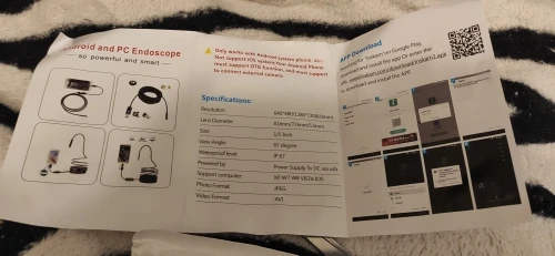 За свои деньги не плохо, но я бы раскошелился на версию с большим разрешением и дополнительный метр. В инструкции есть приложение по QR коду, оно не заработало, пришлось качать usb camera, с ним все заработало, но периодически заметна просадка кадров где-то до 10-15. Для тех кому на пару раз что-то посмотреть сойдет, а тем кто хочет постоянно что-то через него разглядывать, возьмите более дорогой эндоскоп.