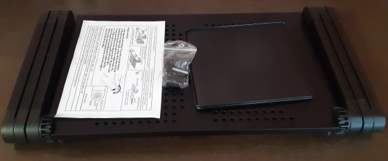Доставка в Белгород 6 дней, доставил курьер). Упаковка - картонная коробка. Столик замечательный! Без вентилятора, но мне он не особо нужен. Легкий, ничего лишнего, без кучи винтиков, достаточно крепкий. НО! Мой ноут 17,3 дюйма шириной 39,8-39,9 см не влезает!!! Мешают колесики! Не хватает пары миллиметров! Переворачивала другой стороной - тоже не помещается! Так что, 42 см - это сама платформа! Хотелось бы, чтобы указывали это!