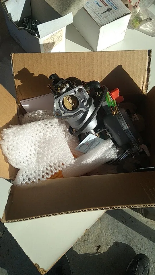 Карб получен в течении 20 дней. Все в целости и сохранности. Вложен подарок "женский платок". Установлен на гену 5 Квт движок 420 см3. Работает чётко как на бензине так и на балонном газе "Пропан". Магистрального газа нет проверить невозможно. Продавцу респект и удачи в бизнесе.