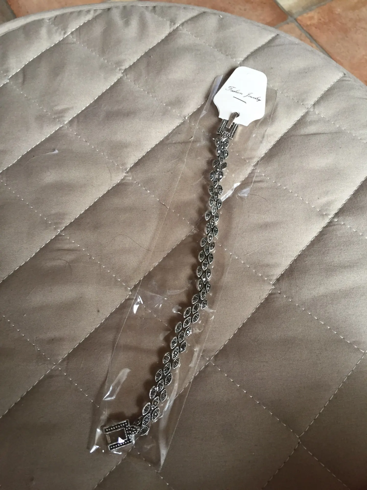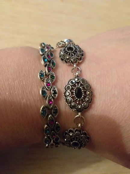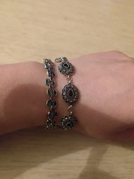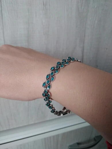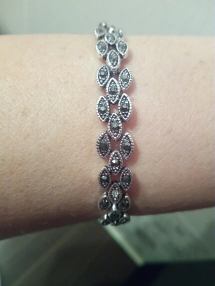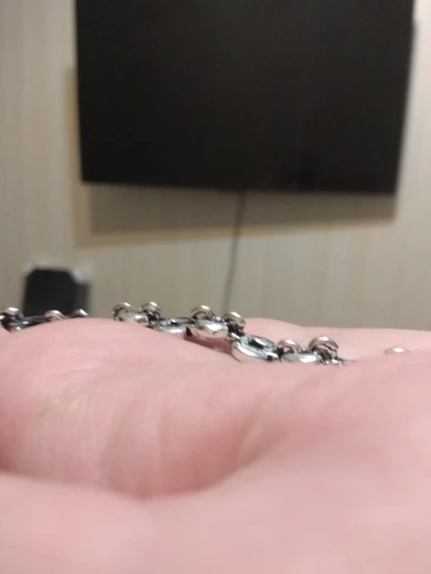 Спасибо продавцу за браслет. В Беларусь приехал быстро. Браслет оказался большим, легко сняли лишние два двойных звена. Качество хорошее, стразы все на месте. Из-за особенностей модели браслет не плотно прилегает к коже, поэтому на руке смотрится не очень красиво - крутится, не ложится ровно. На это стоит обратить внимание перед покупкой.