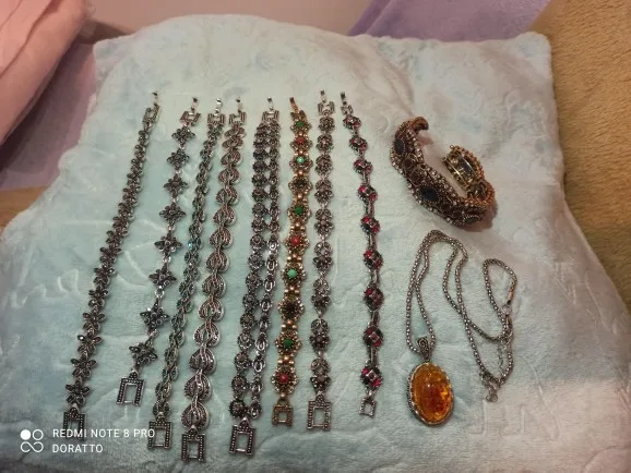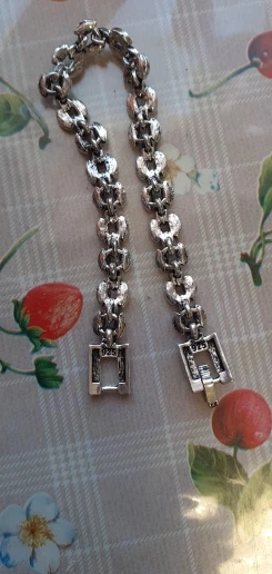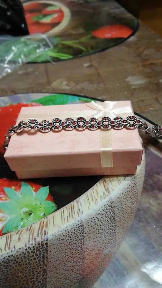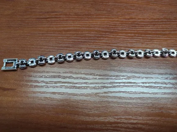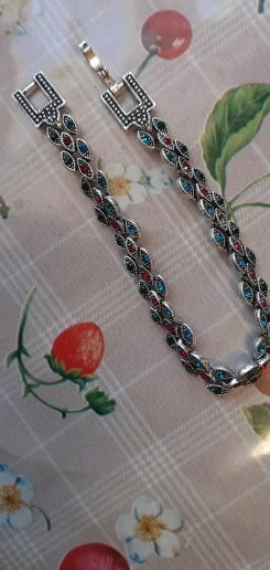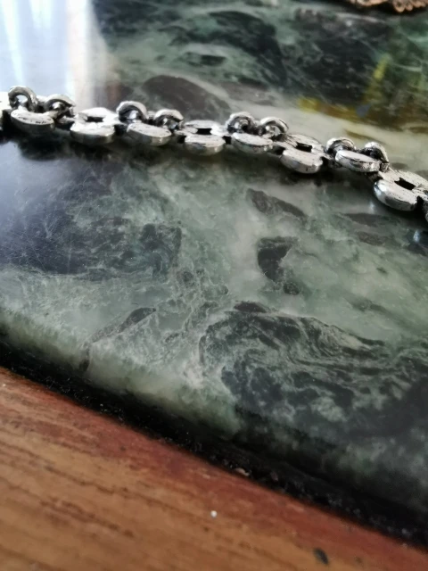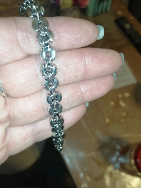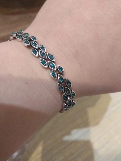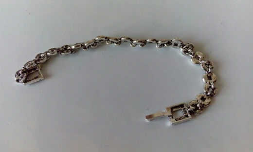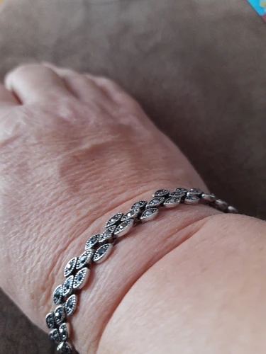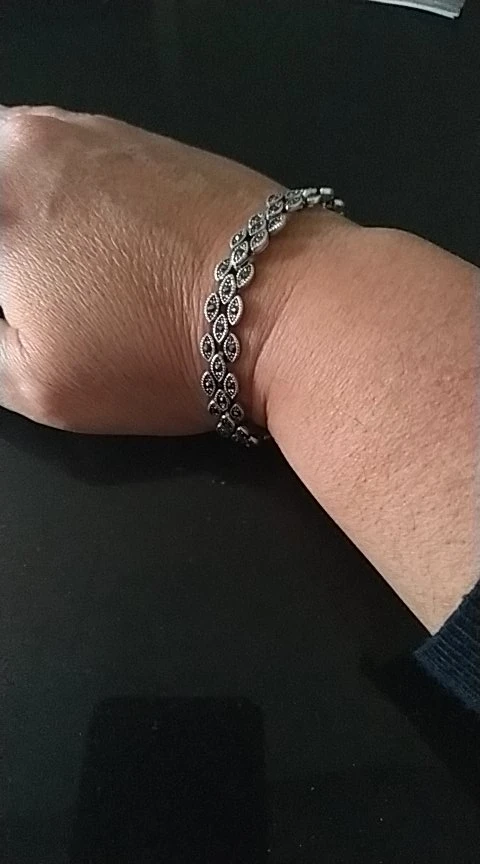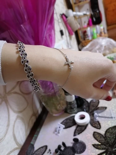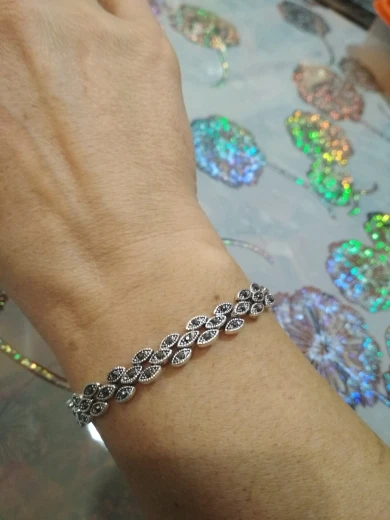 Браслет серебряного цвета, но очень тяжёлый металл. грубые соединительные колечки не позволяют браслету лежать на руке, звенья постоянно крутятся. Кто-то скажет , что это для игры камешков хорошо. Я считаю, что просто грубая работа. При плоском соединении звеньев браслет бы только выиграл. Был бы не так груб и не потерял бы своей пластичности и гибкости. Абсолютно непонятна маркировка 925. К серебру там очень далеко и по цвету, и по весу изделия. В остальном : камешки все на месте, сверкают, переливаются. Браслет смотрится хорошо. Возможно, что в носке будет переворачиваться из-за колец на тыльной стороне. Браслет требует доработки, возможно, замены колечек, связывающих звенья. Доставка в рамках заявленной.