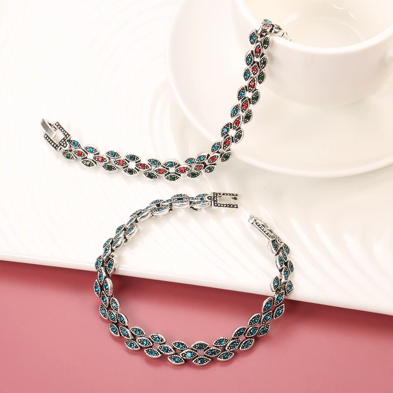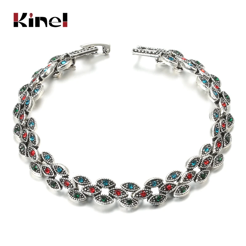 Kinel винтажные посеребренные браслеты овальный глаз Кристалл Браслеты для женщин шарм Простой турецкий браслет Бохо обручальные украшения