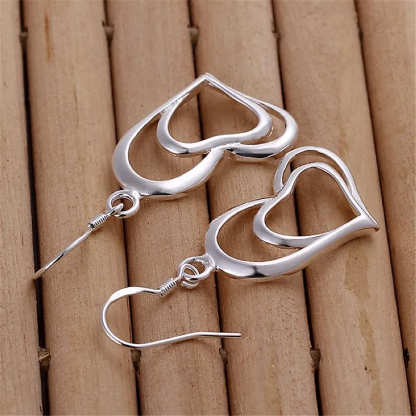 Милые серьги серебристого цвета с двойным сердцем, модные украшения для девочек, подарок на день Святого Валентина, бесплатная доставка