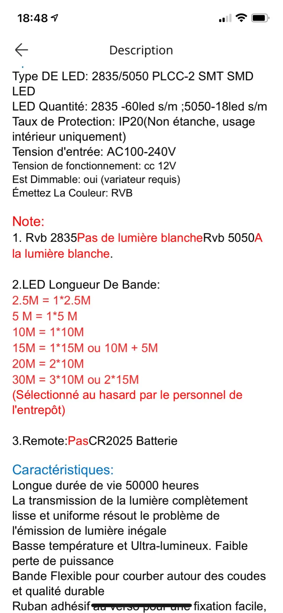 Заказ 2x10 метров и получил 4x5 метров. Кроме того, сломанный светодиод и продавец не хочет возвращать мой правильный заказ. Плохое общение с ним. Я не рекомендую это.