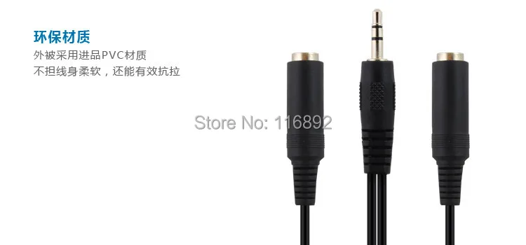10 шт.лот, черный, 3,5 мм, 2 пары, аудио линия, гарнитура, Разветви...