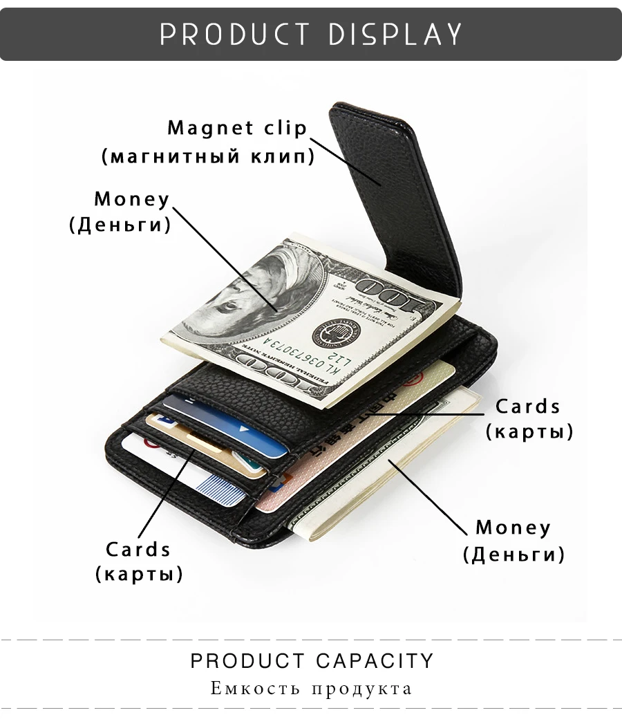 Кошелек CUIKCA унисекс, ультратонкий, с магнитным зажимом, для кредитных карт