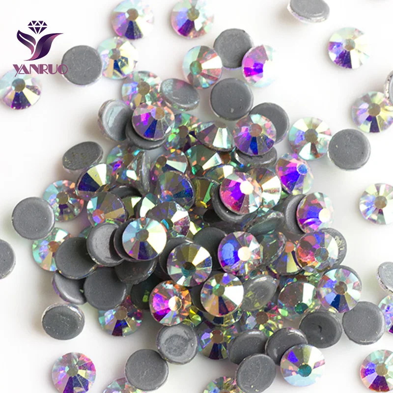 YANRUO 2058HF Ясно AB Горный Хрусталь Hot fix Strass Исправления Камни И Кристаллы Горный Хрусталь для Одежды