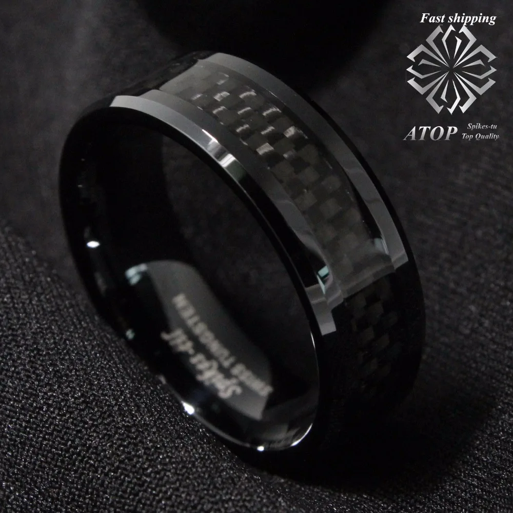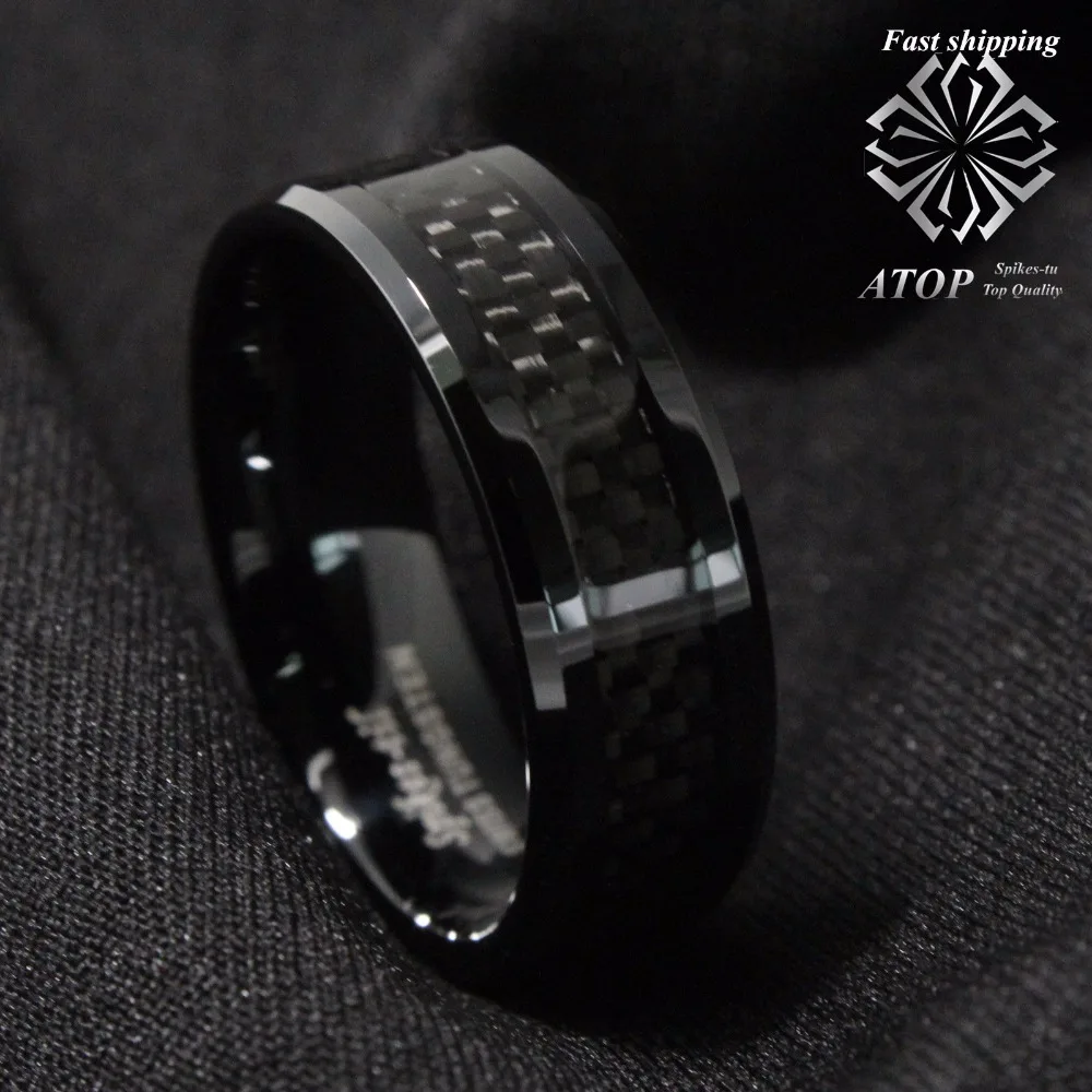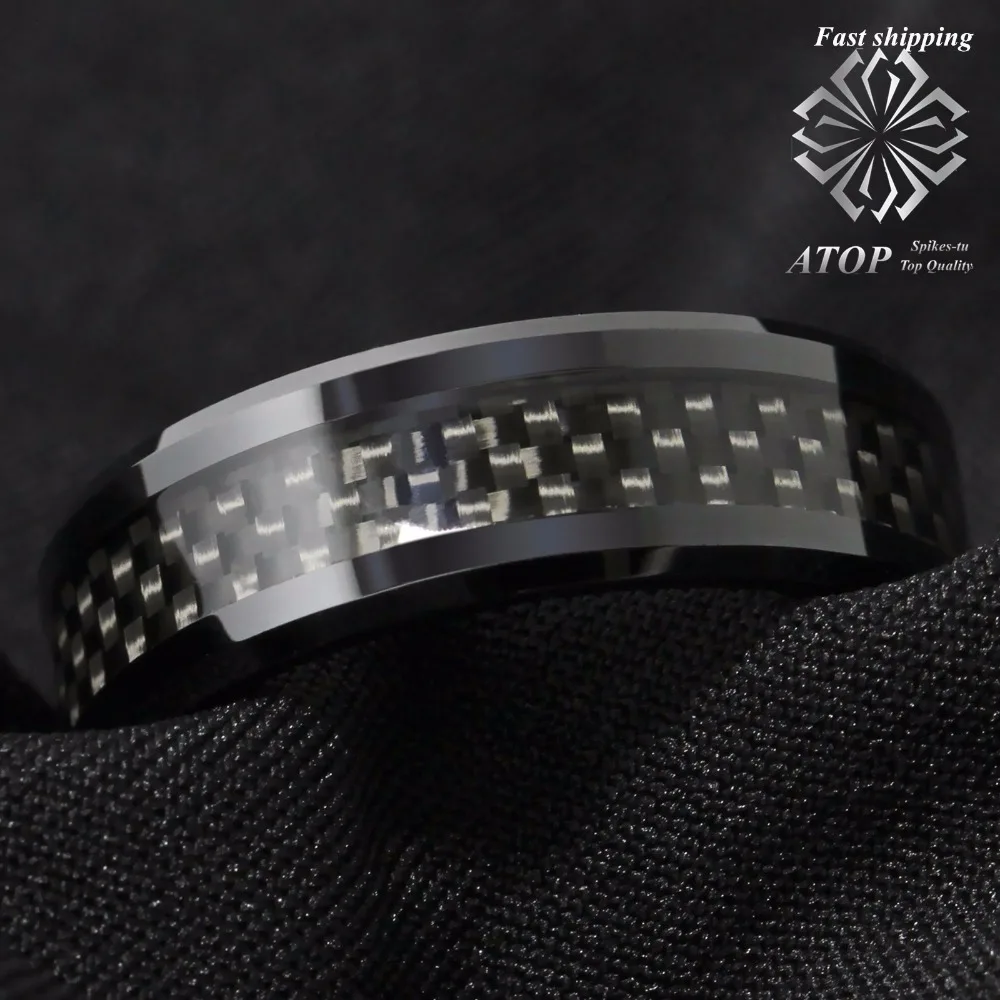 Мужское вольфрамовое кольцо ATOP 8 мм, обручальное кольцо из черног...