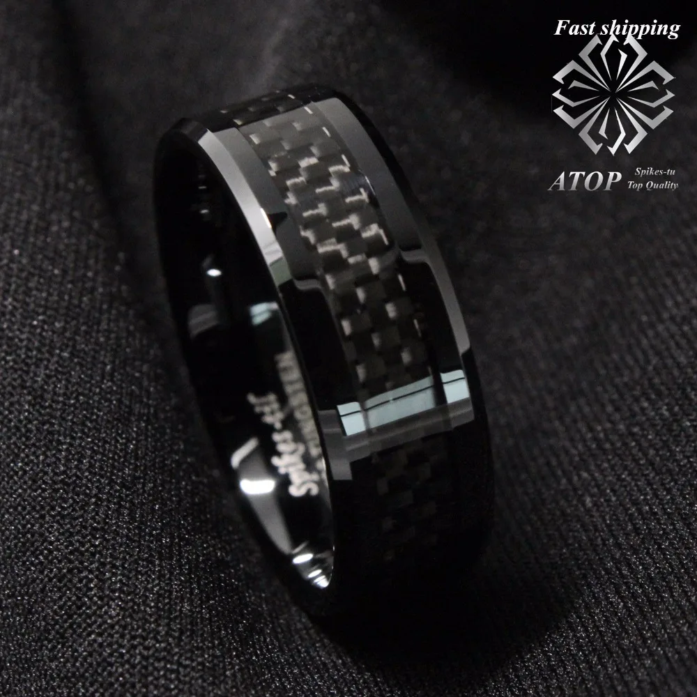 Мужской обручальный браслет из углеродного волокна, 8 мм, черный, ювелирные изделия кольцо из вольфрама