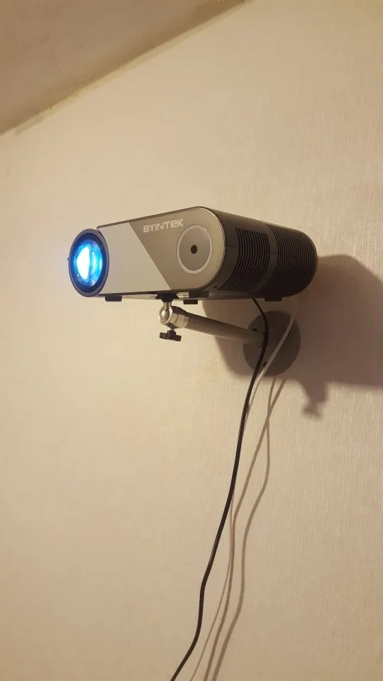 Приехал за пару дней из россии, но к сожалению я повесил на потолок и длины не хватило, а при условии что у меня светоотражающий экран картинку совершено не видно, лучше если вешаете на потолок, купите кронштейна по длиннее, сейчас скорее всего буду заказывать удлинители, а они стоят практически как кронштейн :)