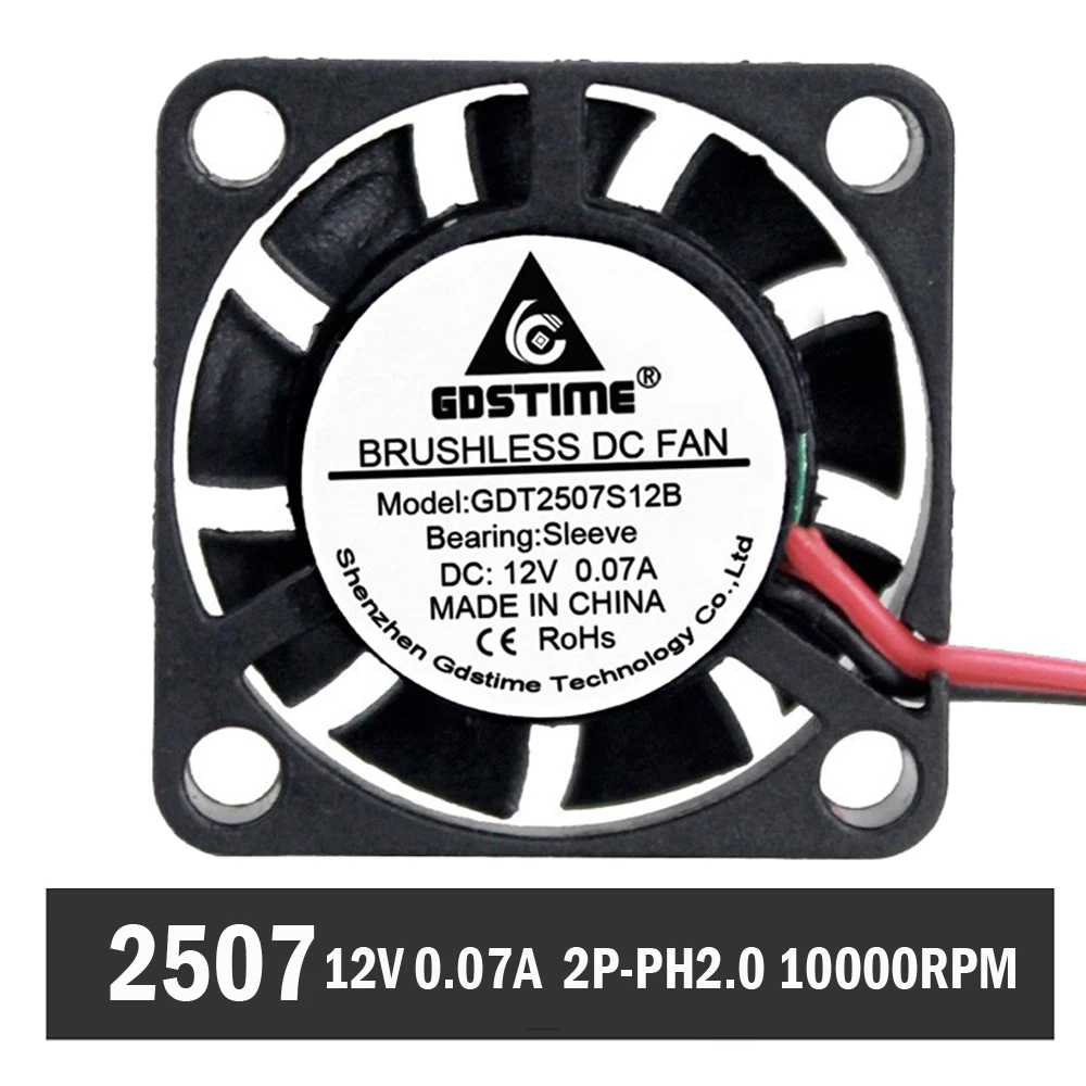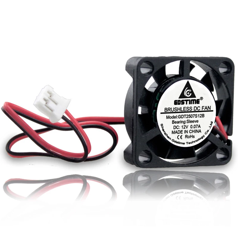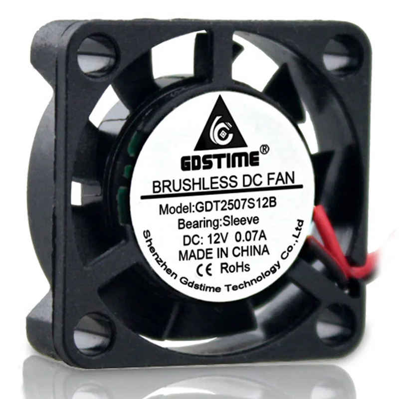 10 шт. Gdstime 2Pin 2507 2,5 см 25x25x7 мм 25 мм DC 12 В микро кулер Охлаждающие вентиляторы кулер бесщеточный чипсет радиатор мини охлаждающий вентилятор