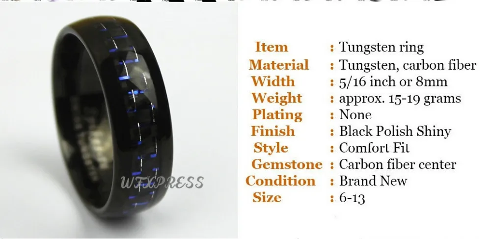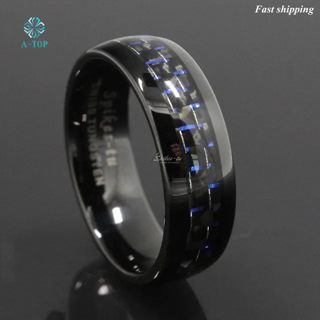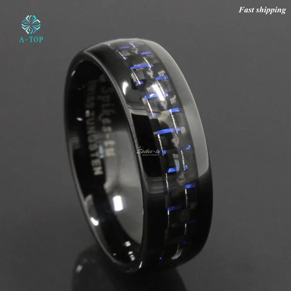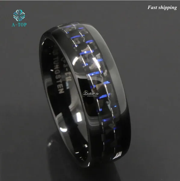 8 мм черное и синее вольфрамовое кольцо с углеродным волокном, мужской свадебный браслет, ювелирные изделия, бесплатная доставка