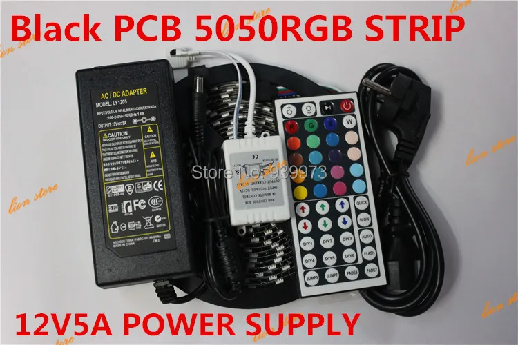 Гибкий Черный PCB версия Водонепроницаемая 5050 RGB Светодиодная лента 5 м 300 LED SMD 44 клавиши ИК пульт дистанционного управления 12В 5А адаптер питания