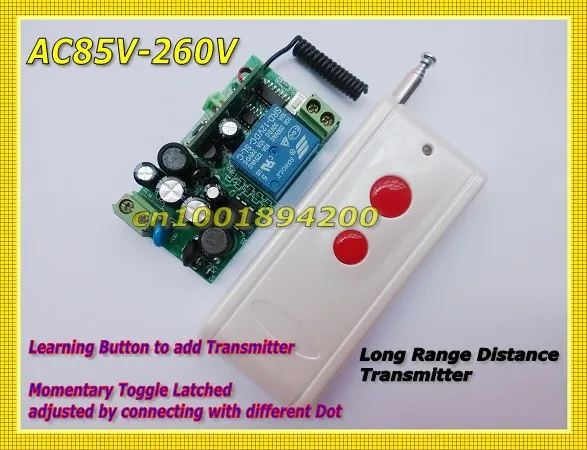 Тип кода: код обучения добавьте передатчик с помощью кнопки обучения на плате приемника.
