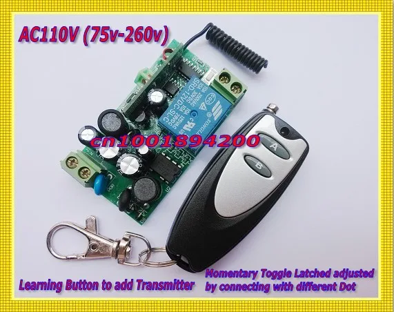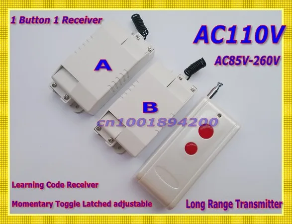 Переключение ------------------ нажмите кнопку передатчика A 1 раз, реле приемника A Включено, нажмите кнопку A снова, реле приемника A выключено, то же, что и B