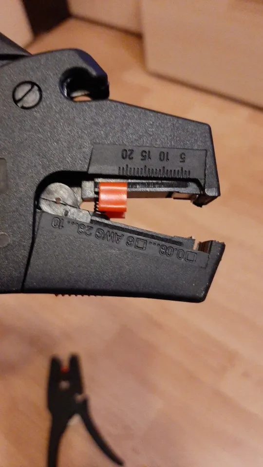 Продавец отправил через 3 дня. Приехало ещё через две недели. Упаковано средненько, если бы на почте наступили - точно бы сломали, но мне повезло. Инструмент почти полная копия оригинала. Губки также можно и нужно настраивать. С завода дерёт медные жилки или царапает медь на одножильном. Зачищает также как оригинал в конце движения отпуская губки захвата, в отличие от многих других конструкций, где чтобы отпустить провод надо разжать инструмент. Пластик конечно хлипковат, поэтому 6 квадратов я бы им не стал зачищать, но в розетках 2,5 квадрата самое то подлазить.