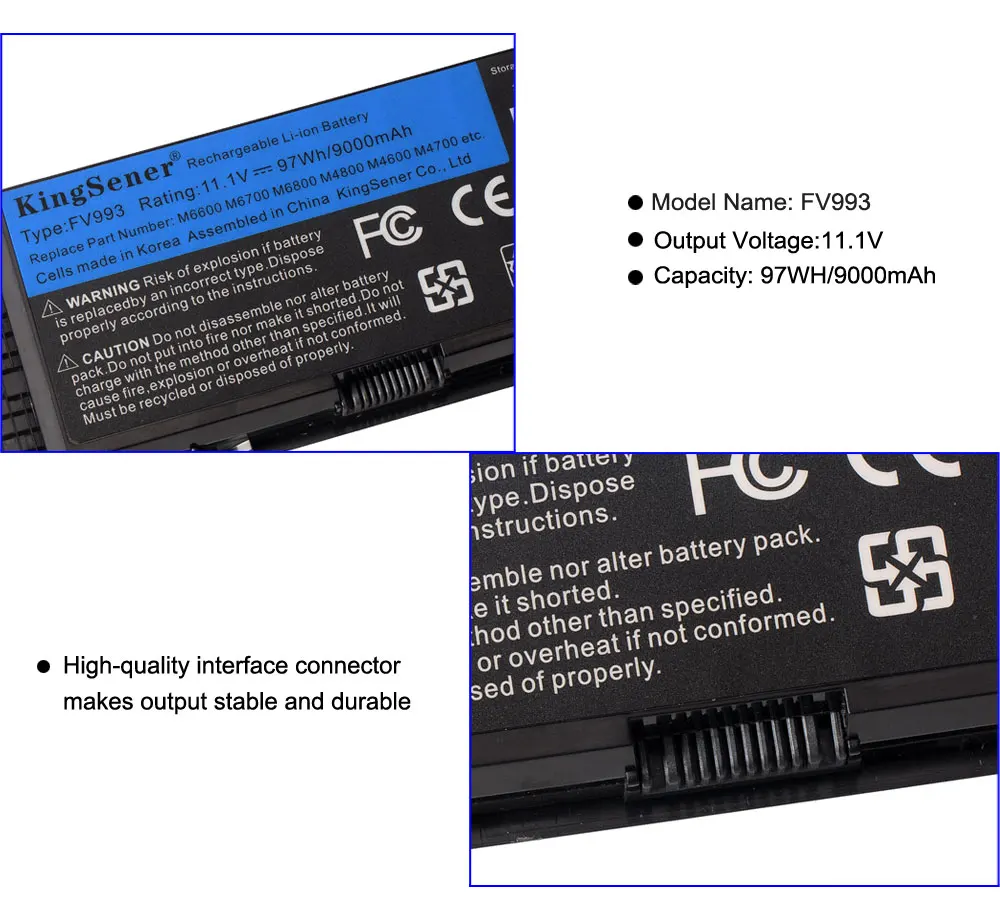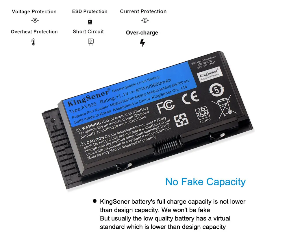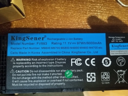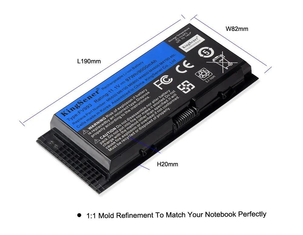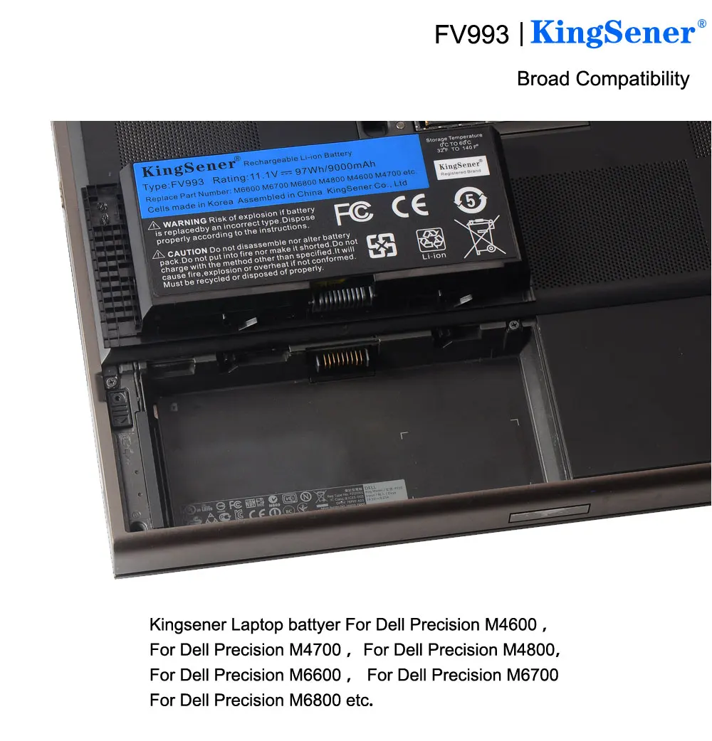 Аккумулятор KingSener FV993 для ноутбука DELL Precision M6600, M6700, M6800, M4800, M4600, M4700, FJJ4W, PG6RC, R7PND, OTN1K5, 11,1 В, 97 Втч
