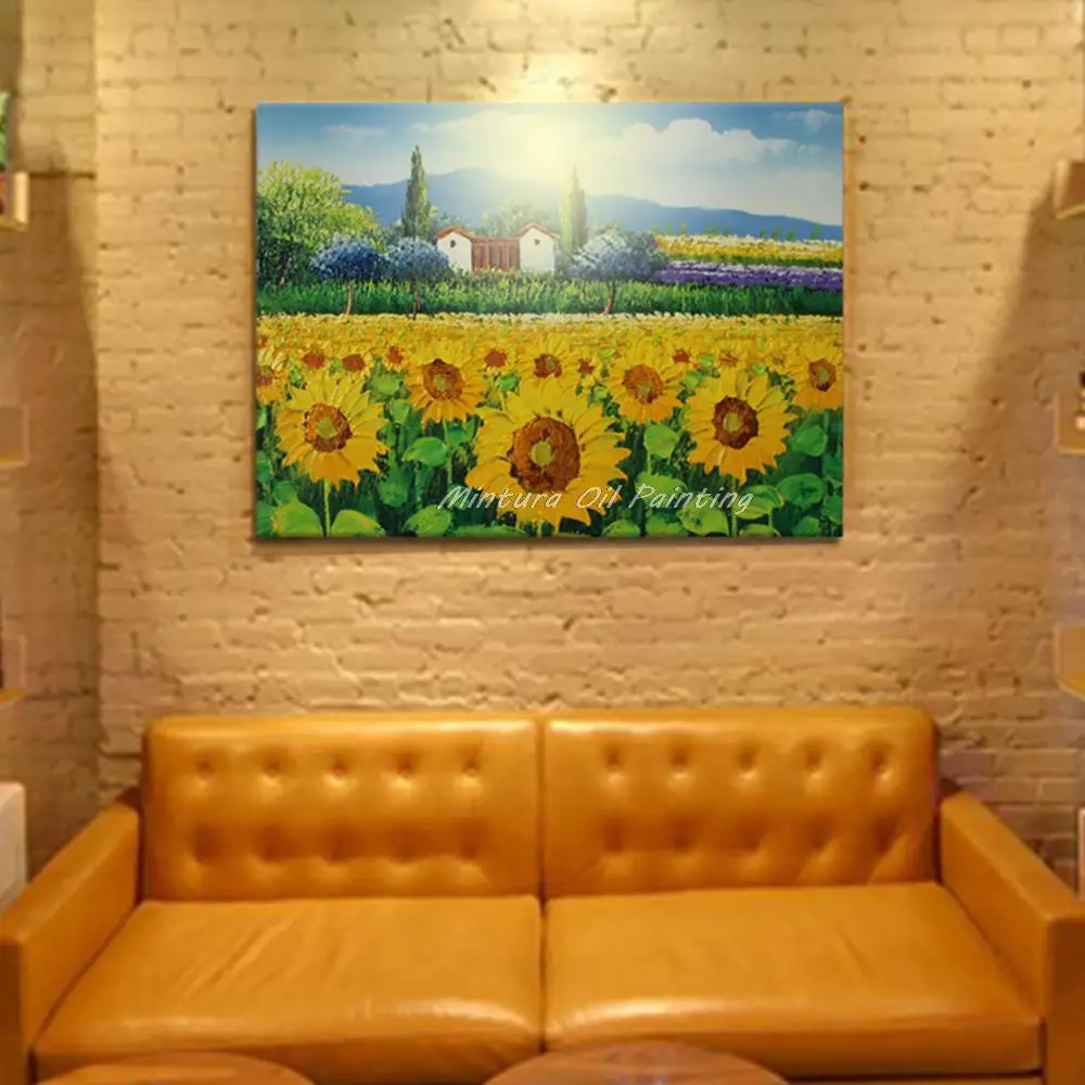 Mintura ручная роспись нож Подсолнух картина маслом на холсте ручной работы пейзаж настенные художественные картины для гостиной украшение дома