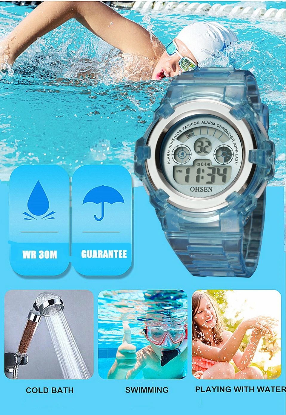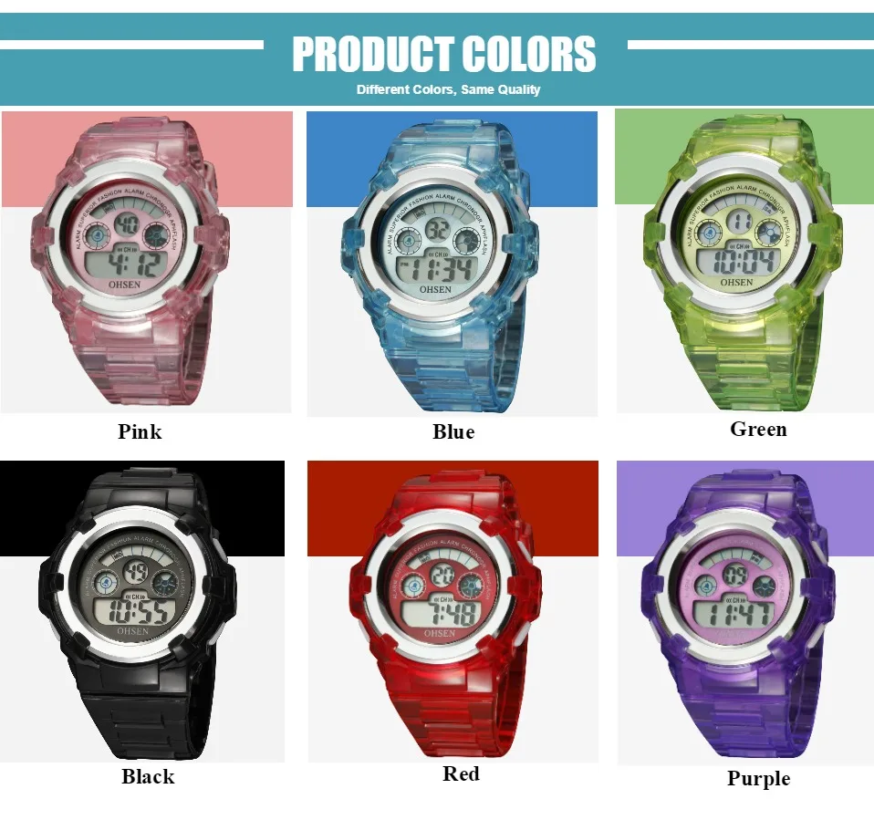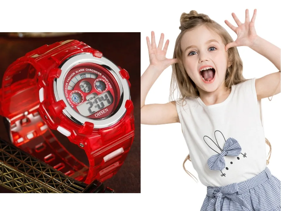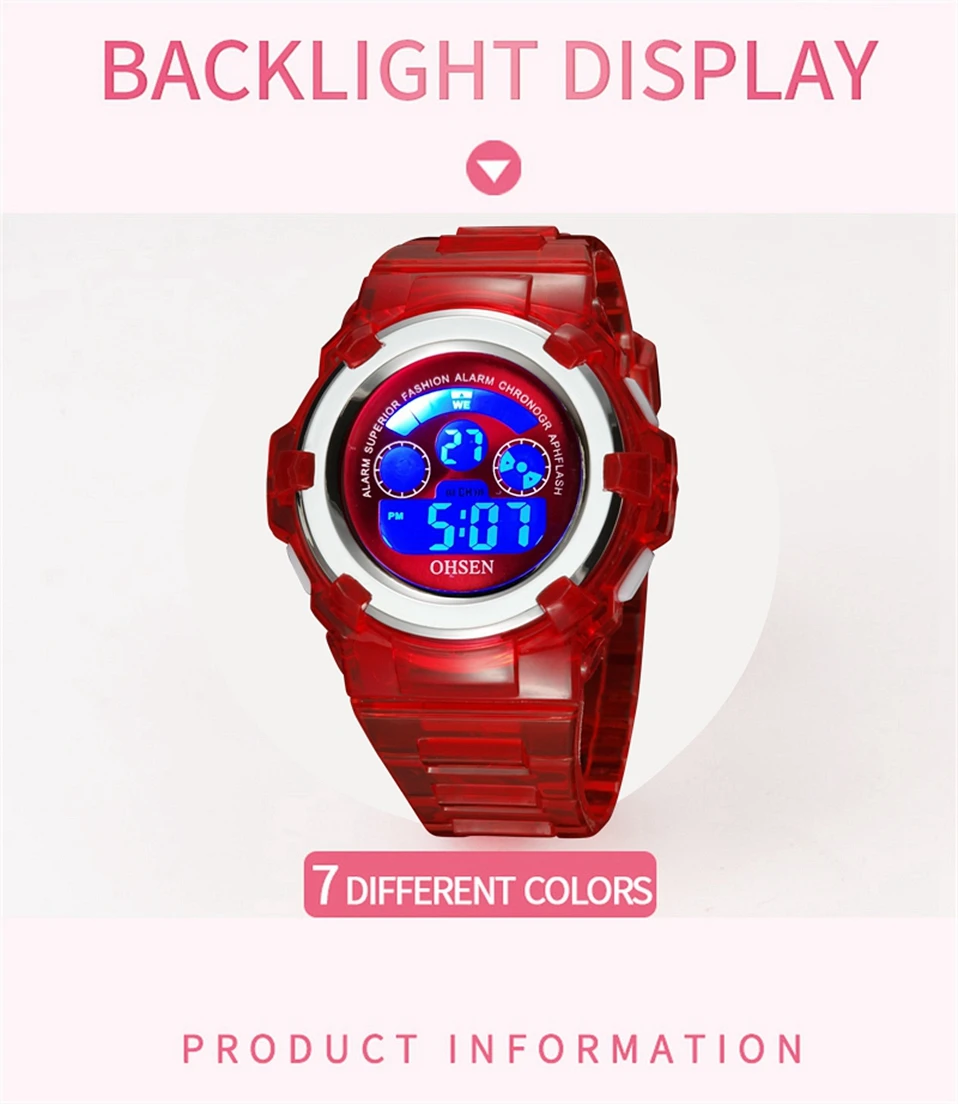 Детские спортивные цифровые светодиодные водонепроницаемые часы для девочек и мальчиков 7 цветов модный дизайн электронные наручные часы красный секундомер