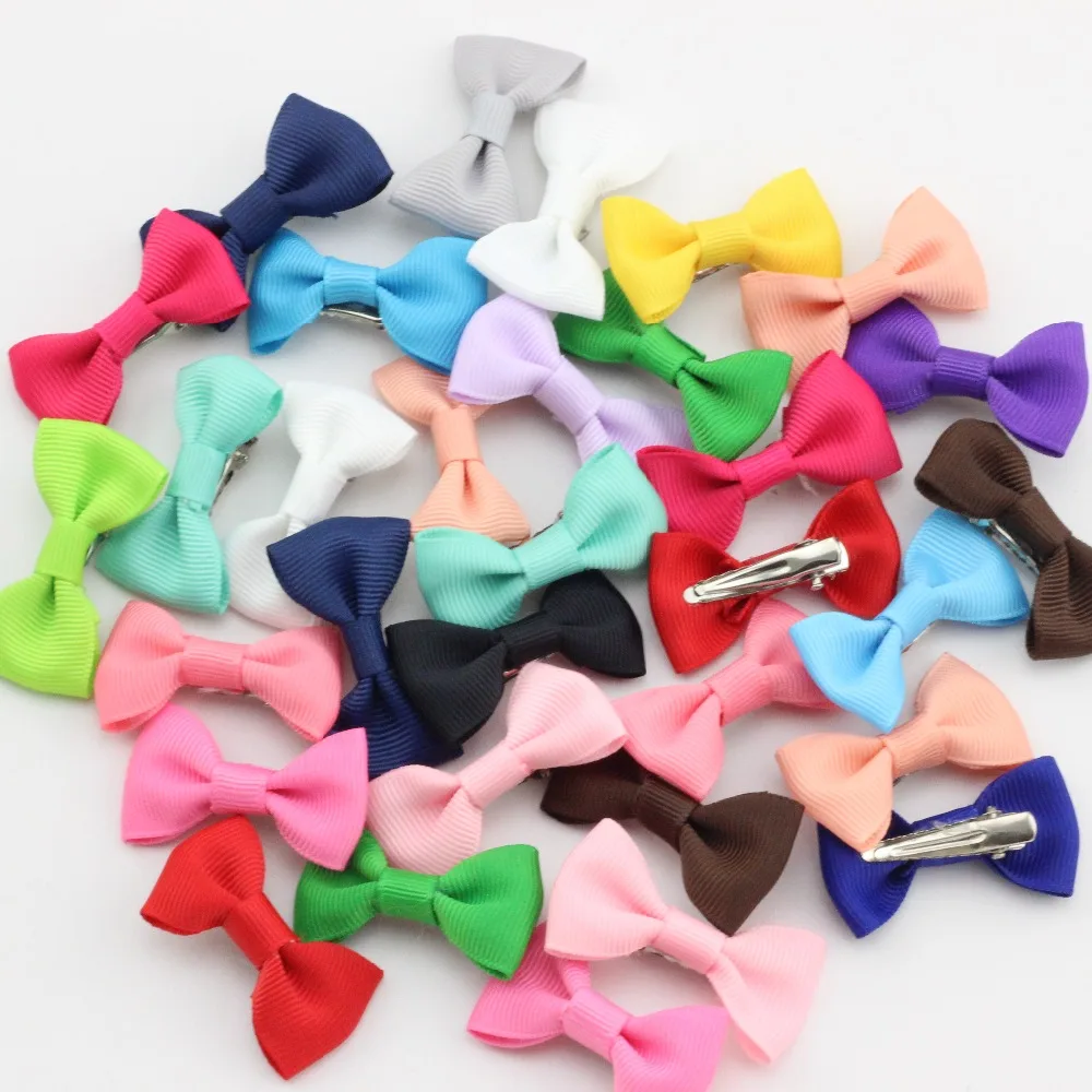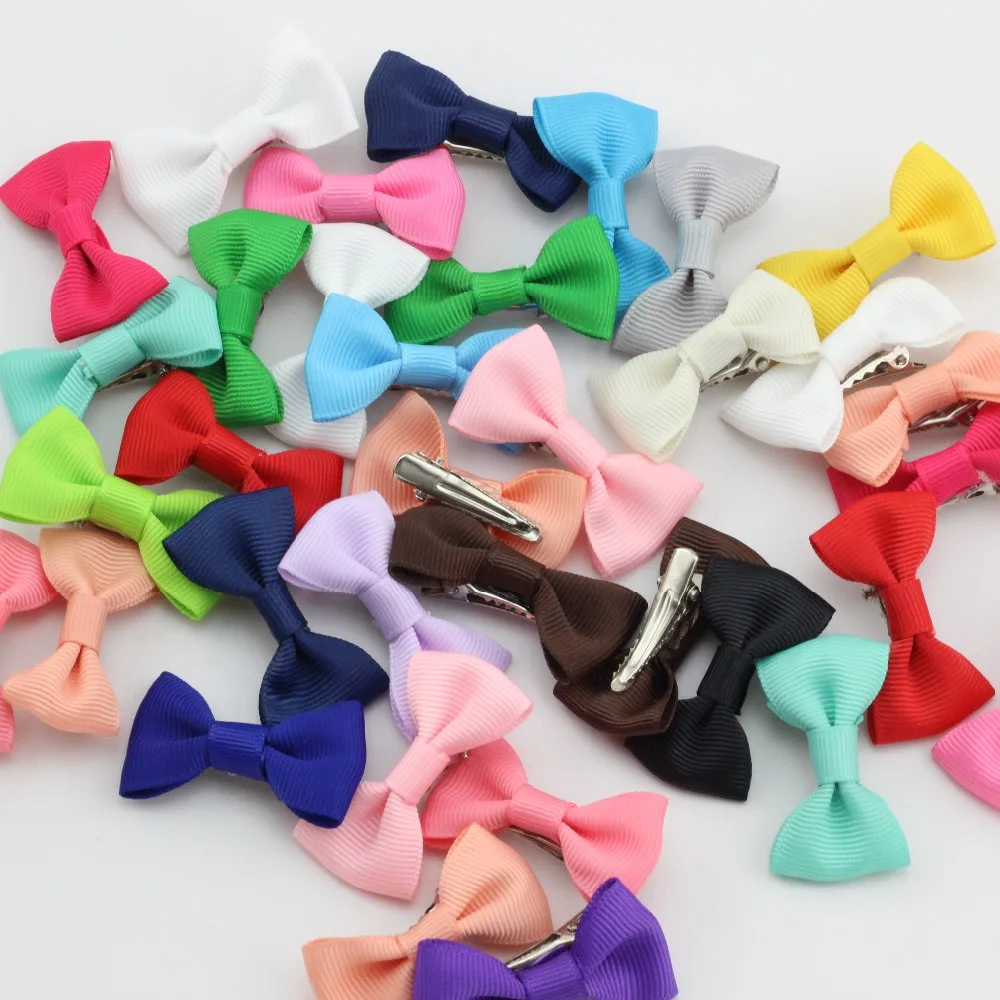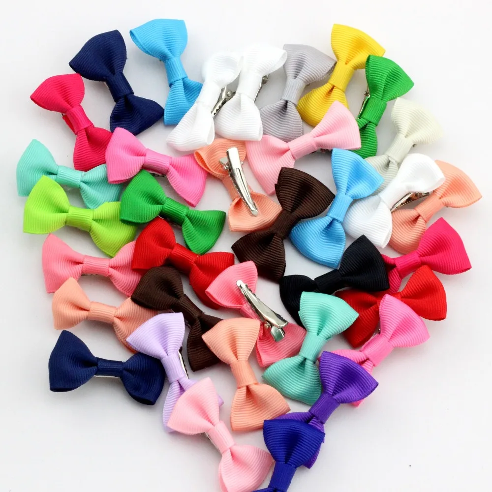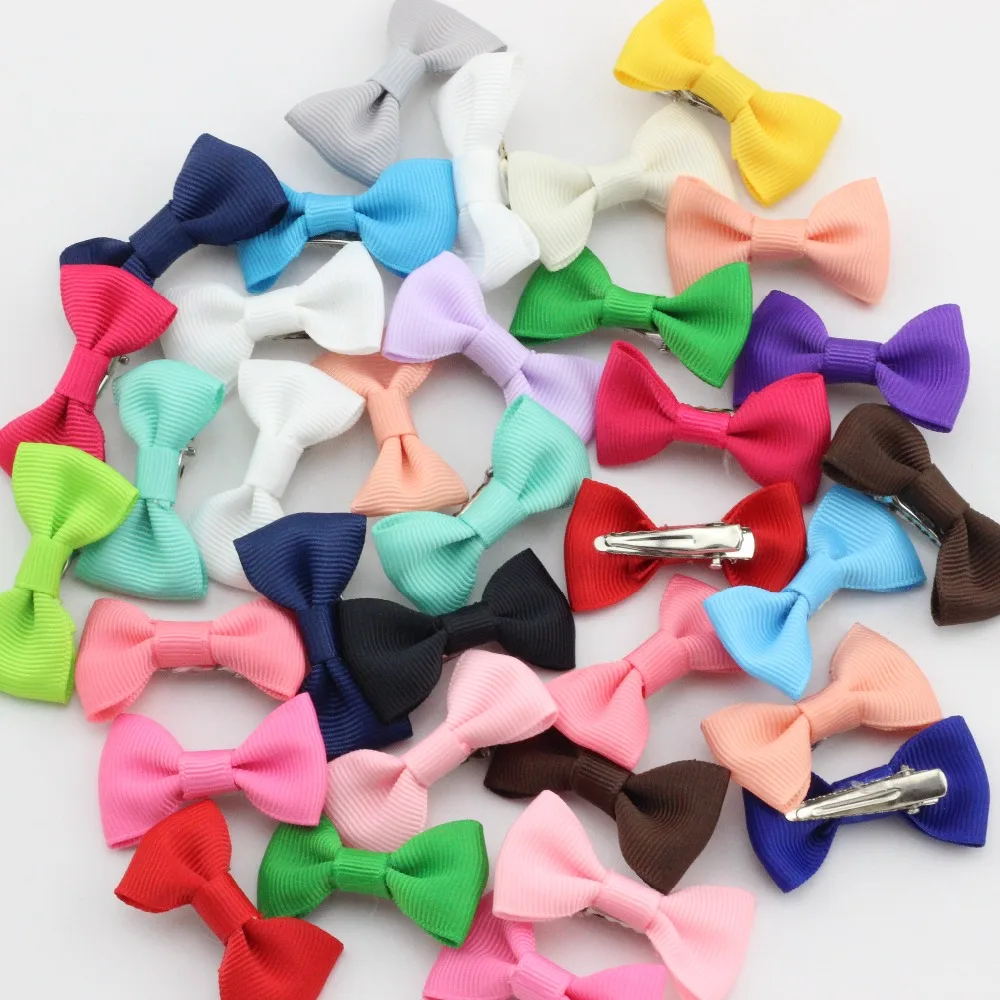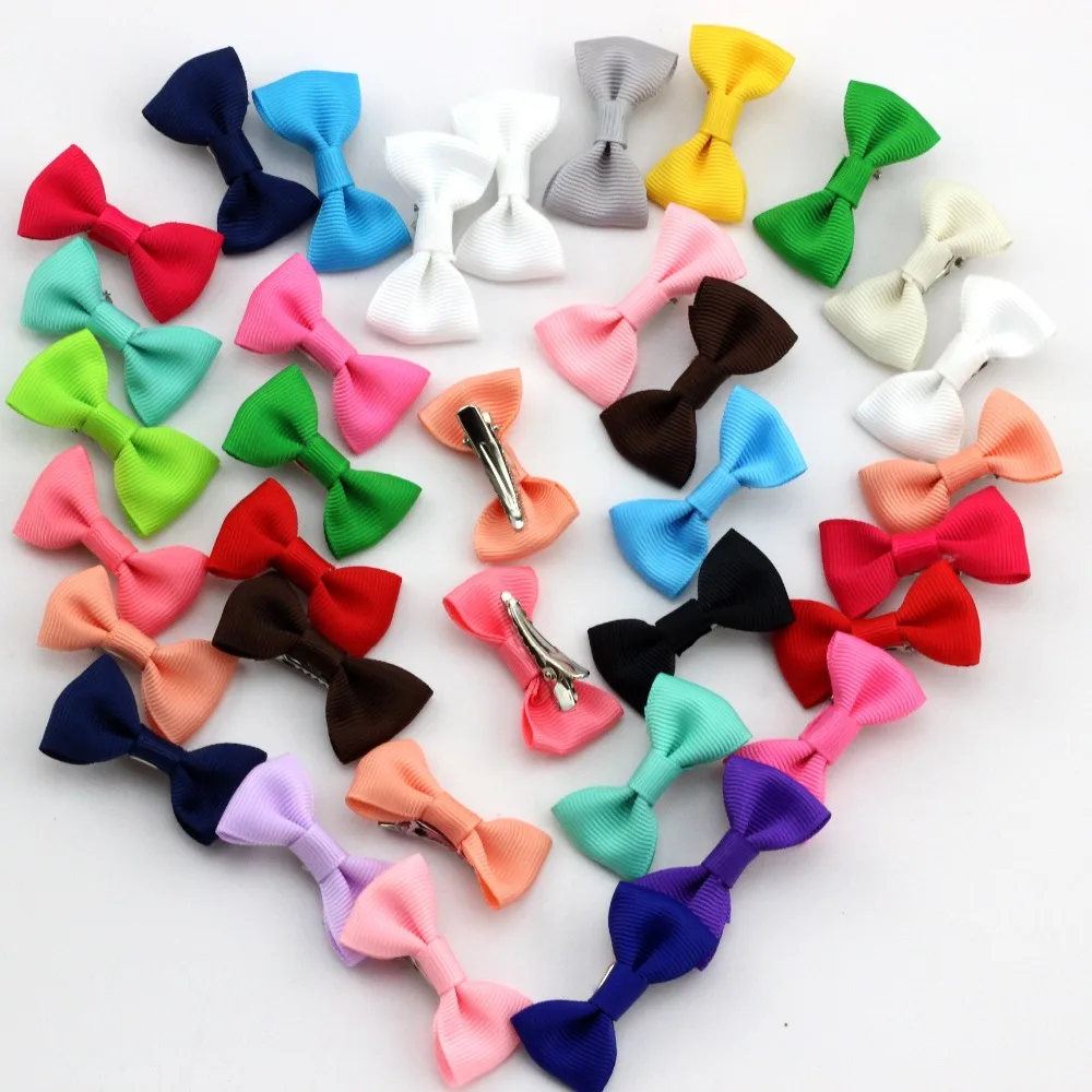 Модные детские аксессуары для волос с бантом из маленькой ленты 24 шт.лот 2 дюйма, детские заколки для волос с бантом, прекрасные красочные ленты, Детская шпилька для волос