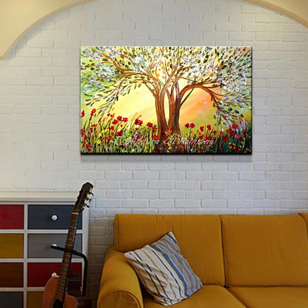 Mintura ручная роспись цветы цветущие Масляные картины на холсте Ручная работа абстрактные деревья картина на стену для гостиной домашний декор