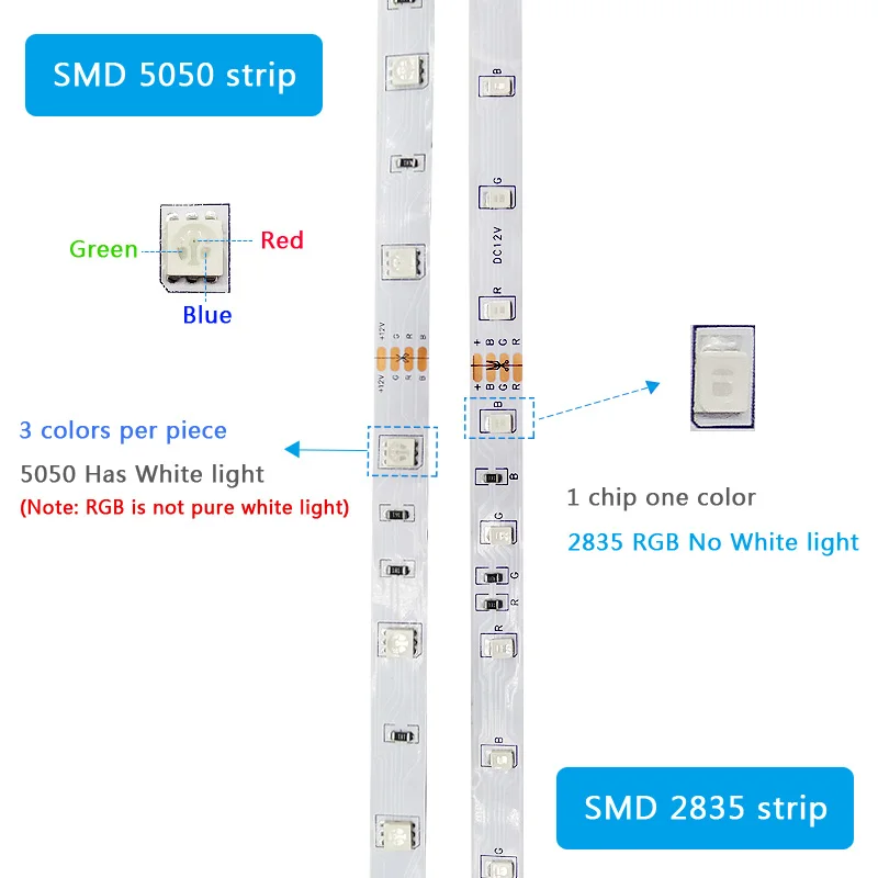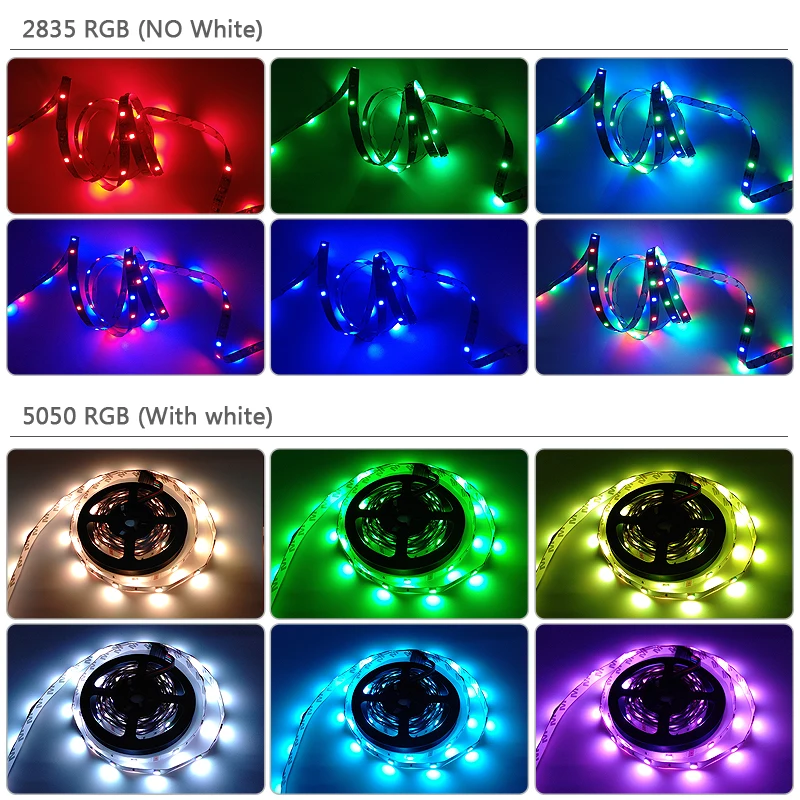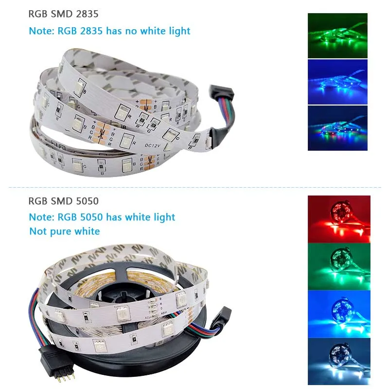 Если вы хотите, чтобы светодиодный rgb-полоски имели несколько цветов, включая белый, теплый белый или желтый монохромный, пожалуйста, купите светодиодный 5050 RGB Полоски.