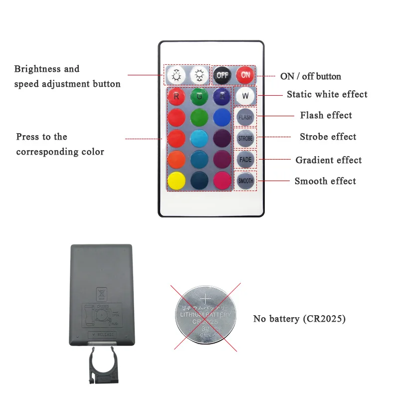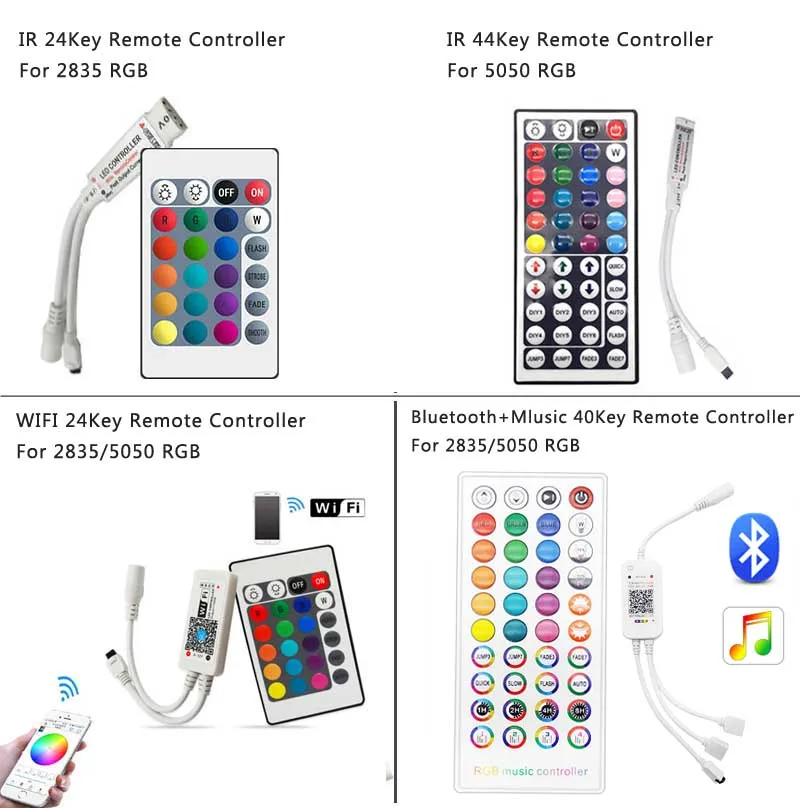 Пульт дистанционного управления: ИК-контроллер 24Key / WIFI контроллер 24Key / Bluetooth + Музыка 40Key (оба не являются батареей)
