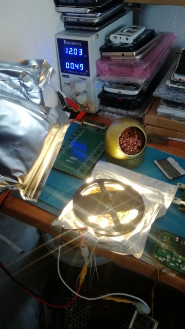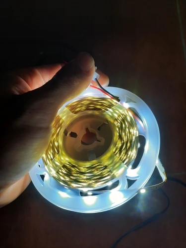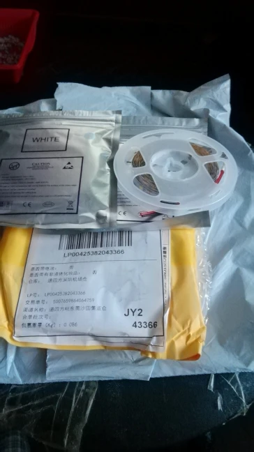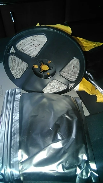 Посылка шла чуть меньше двух недель. Бухта повреждена, но лента цела. Подавал 12в, в бухте при этом греется быстро. Посмотрим как в размотаном виде будет греться. Светит не слишком ярко, но мне для моих целей подходит. За такие деньги нормально.