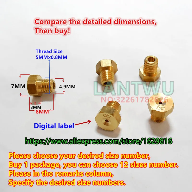 (12 шт.упак.) Карбюратор главной струи Teikei TK JOG, шестигранная форсунка, YM форсунки (цифровой дисплей этикетки) (Выберите свой размер)
